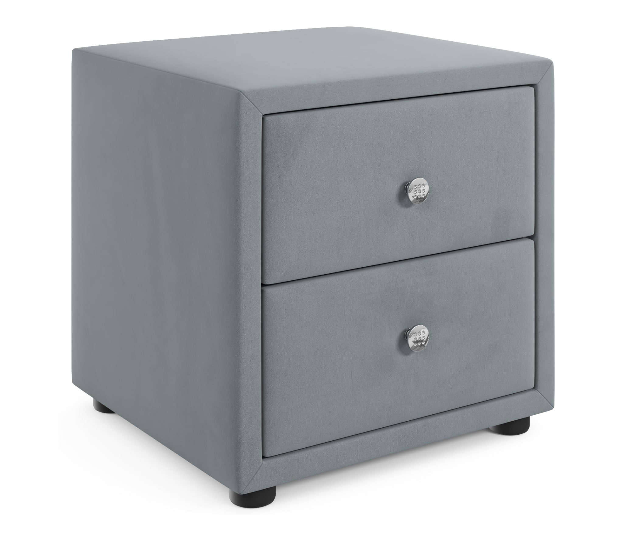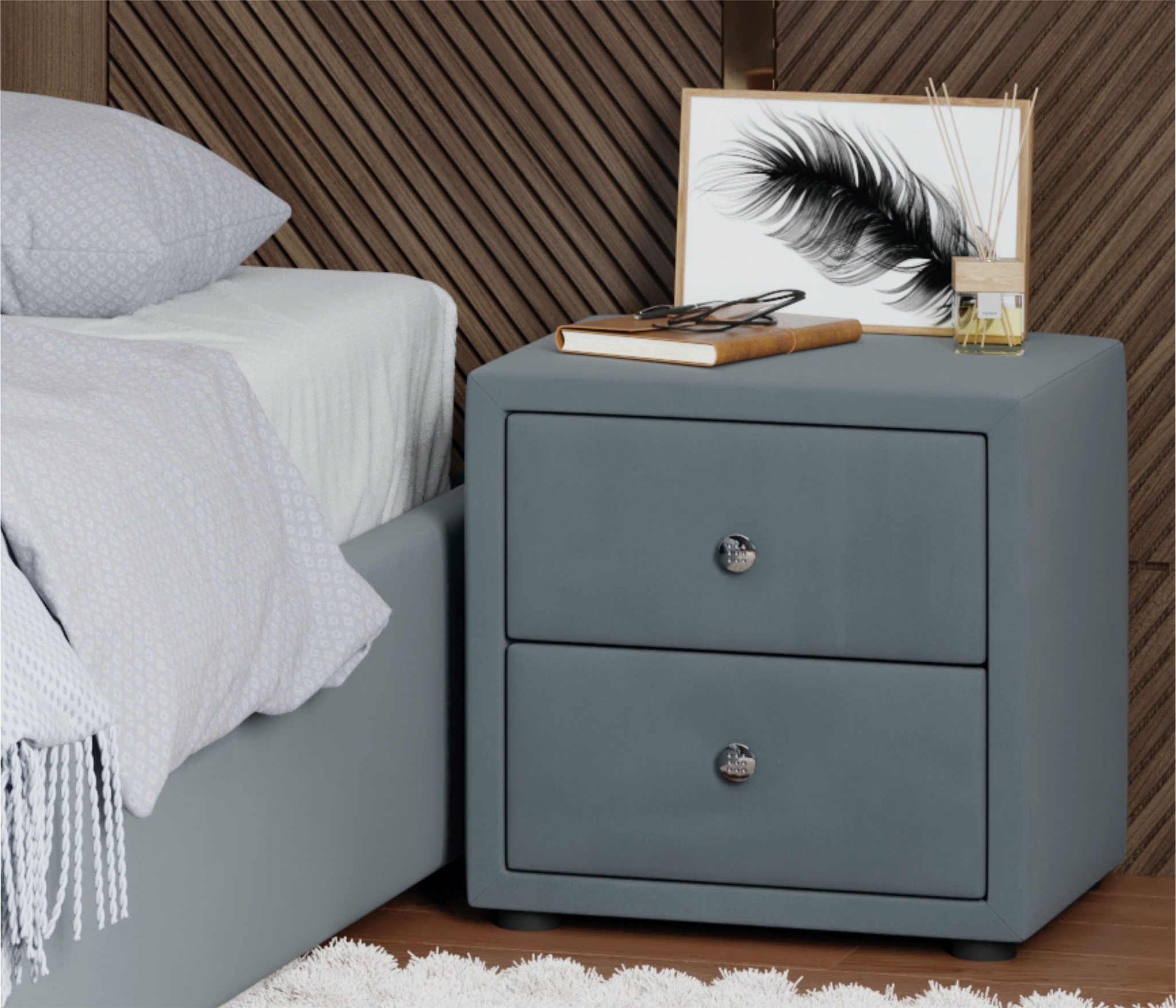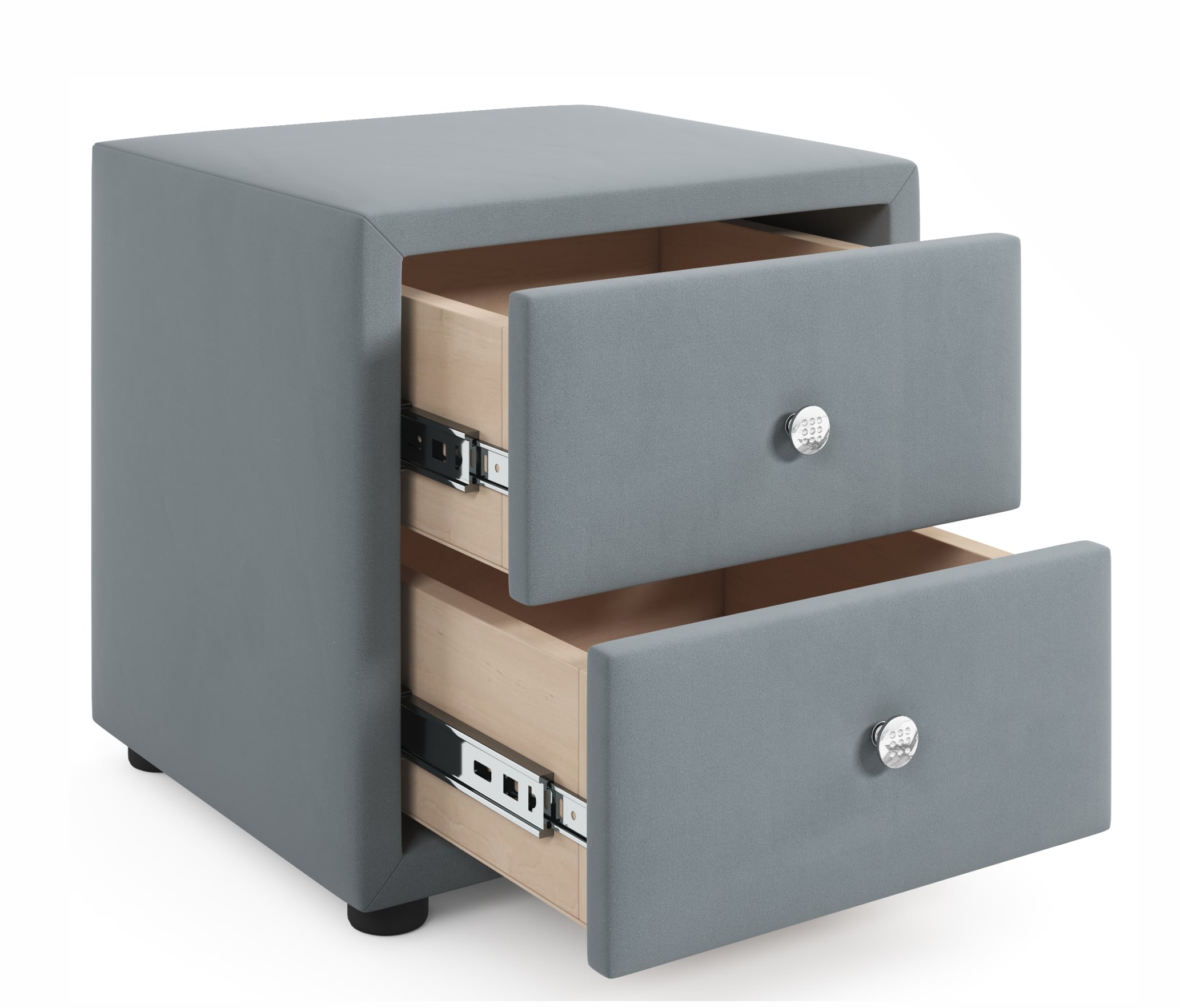 Мягкая тумба укомплектована 2 выдвижными ящиками с декоративными ручками.