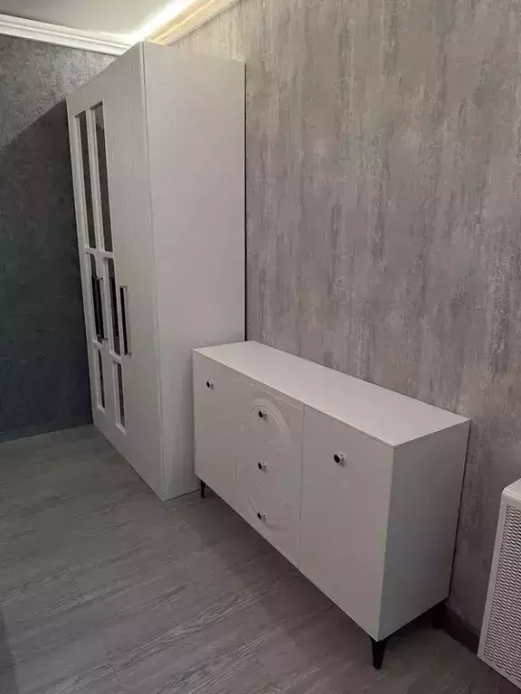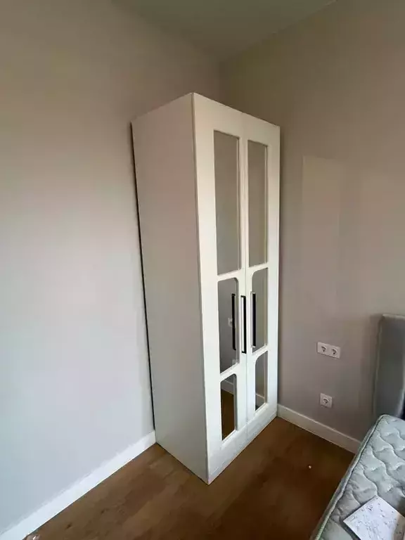 Гардеробная композиция составлена из шкафа-пенала и двухдверным шкафом. Пенал можно разместить как слева, так и справа. Шкаф оборудован за распашными дверями штангой для одежды на плечиках и антресольной и нижней полками. Декор шкафа для одежды 2-х дверного решён нестандартно и интересно. Зеркало накладывается изнутри фасада, проявляя таким образом сквозную ажурную фрезеровку. Внутреннее наполнение пенала Вы определяете сами, есть возможность расположить внутри - 5 полочек или штангу для одежлы на плечиках и две полки верхнюю и нижнюю. Пять полок внутри шкафа-пенала позволят обустроить библиотеку, а штанга для одежды с 2-мя полками - мини-гардеробную. Распашная дверь закреплена четырёхшарнирных петлях, продлевающих время службы мебели. Мебель выполнена из экологически чистой ламинированной ДСП 16 мм, класса эмиссии Е1, детали обработаны ПВХ-кромкой. Визуально плита ДСП имеет глубокое тиснение шагрень, а белый цвет фасадов удачно подчёркивает его. Фасады выполнены из с матовой ПВХ-плёнкой. Такое решение делает мебель визуально более "мягкой", комфортной и расслабляющей, что особенно актуально для спальни. В производстве спальни Валенсия использована фурнитура высоких стандартов. Зеркало выполнено из высококачественного зеркального полотна толщиной 4 мм. Поставляется в разобранном виде в надёжной упаковке, с комплектом сборочной фурнитуры и инструкцией по сборке.
