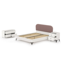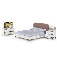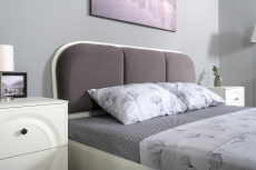 Кровать белая с мягкой спинкой с ТВ-тумбой и тумбочкой Валенсия - стильная светлая спальня в популярном стиле ар-деко.