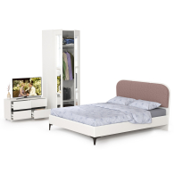 Гарнитур спальный состоит из двухспальной кровати, шкафа 2-х дверного и тумбы под ТВ. Выбирая двуспальную кровать Валенсия 11.36.02 с мякгой спинкой со спальным местом 1600х2000 мм, Вы выбираете крепкий сон и уют. Декоративное изголовье кровати выполнен с мягким элементом. Обивка кровати Валенсия 11.36.02 выполнена из модной, удобной в эксплуатации ткани Велутто. Ортопедическое основание 1600х2000 мм. с гнутоклееными ламелями входит в комплект, матрас приобретаются отдельно. Углубление под матрас - 100 мм. Рекомендованная высота матраса от 100 до 220 мм. Максимально допустимая нагрузка на 1 спальное место - 100 кг. Шкаф оборудован за распашными дверями штангой для одежды на плечиках и антресольной и нижней полками. Декор шкафа для одежды 2-х дверного решён нестандартно и интересно. Зеркало накладывается изнутри фасада, проявляя таким образом сквозную ажурную фрезеровку. Современная тумба под ТВ Квадро 13.277 придётся по вкусу любителям чёрно-белых акцентов в оформлении интерьера. Особый акцент данной модели - абсолютная геометрия дизайна и декоративная вставка фасадной части из анодированного алюминия. Наличие металлического элемента в конструкции тумбы значительно увеличивают её надёжность, прочность и долговечность. Конструктивно тумба имеет 4 одинаковой вместимости ящика, закреплённых на телескопических направляющих полного выдвижения. Фасады ящиков лишены ручек, открывание происходит за край фасада, чему способствует открытое пространство перед декоративной алюминиевой планкой. Верхний горизонт оборудован вырезом для размещения проводов мультимедиа аппаратуры. Опоры регулируются по высоте, что позволяет компенсировать неровность пола, и наделены пластиковыми подпятниками, что сохранит Ваше напольное покрытие от повреждений. Мебель выполнена из экологически чистой ламинированной ДСП 16 мм, класса эмиссии Е1, детали обработаны ПВХ-кромкой. Визуально плита ДСП имеет глубокое тиснение шагрень, а белый цвет фасадов удачно подчёркивает его. Фасады выполнены из с матовой ПВХ-плёнкой. Такое решение делает мебель визуально более "мягкой", комфортной и расслабляющей, что особенно актуально для спальни. Установлена мебель Валенсия на высокие ножки, что делает конструкцию лёгкой и воздушной и практичной в плане уборки. В производстве спальни Валенсия использована фурнитура высоких стандартов. Ящики тумбы установлены на направляющие скрытого монтажа с доводчиками. Поставляется в разобранном виде в надёжной упаковке, с комплектом сборочной фурнитуры и инструкцией по сборке.