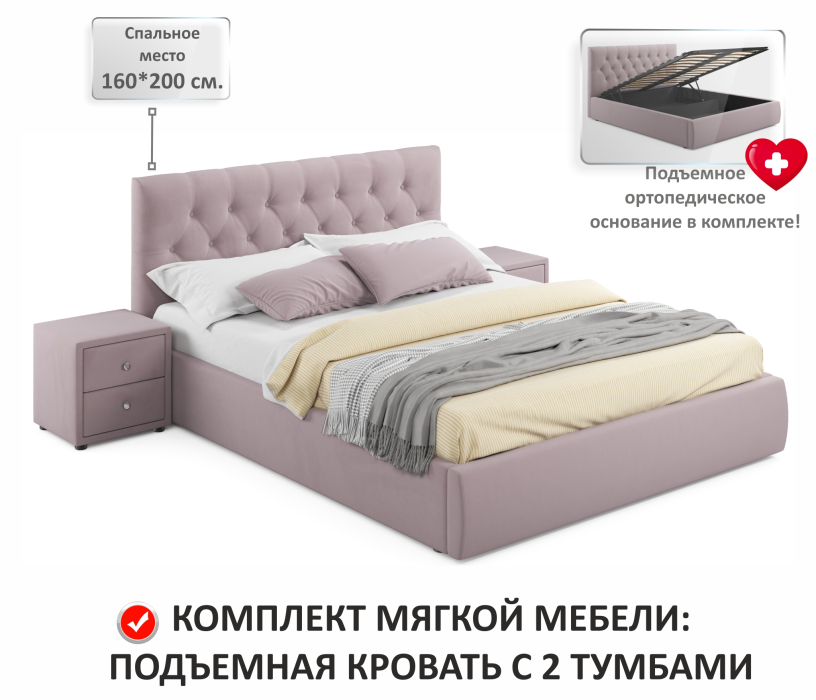 Отзывы о Столплит Мягкая кровать с тумбами Verona 1600 подъемная Лиловый