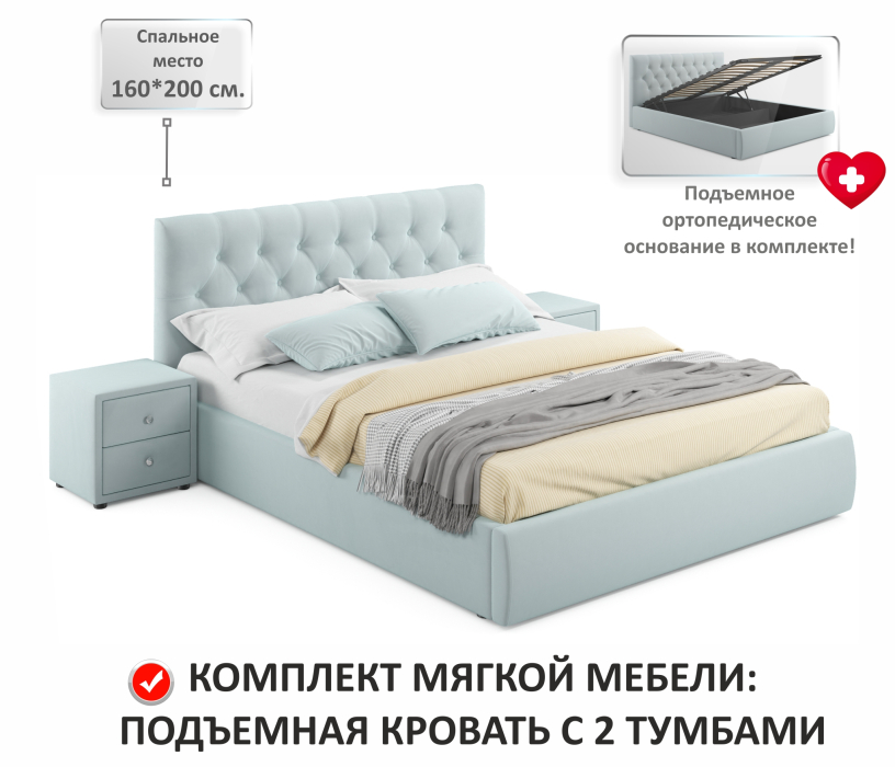 Отзывы о Столплит Мягкая кровать с тумбами Verona 1600 подъемная Мята