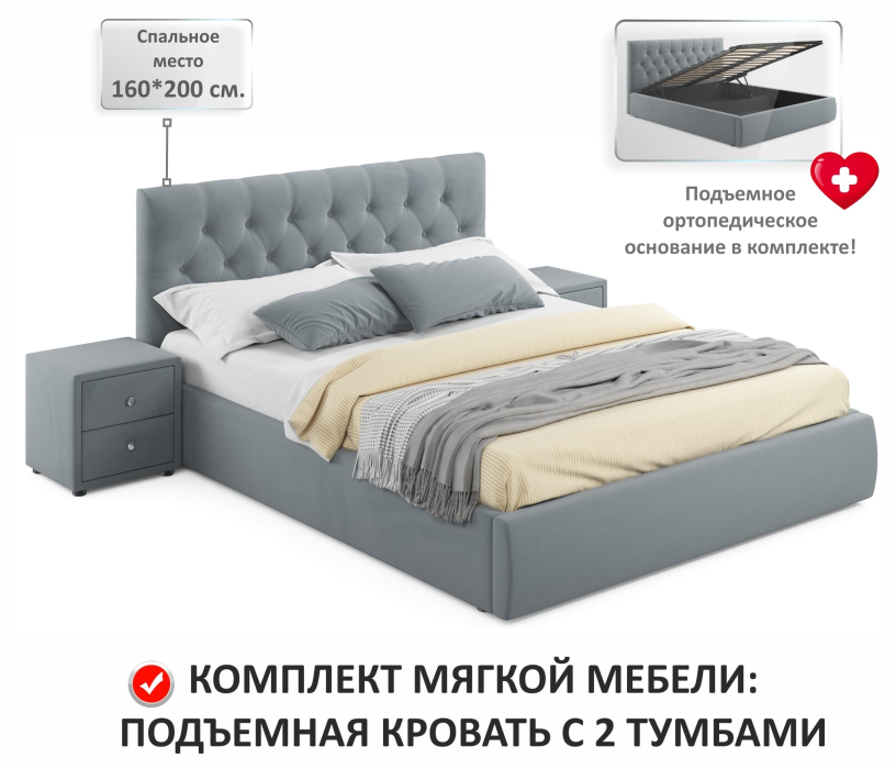 Отзывы о Столплит Мягкая кровать с тумбами Verona 1600 подъемная Серый