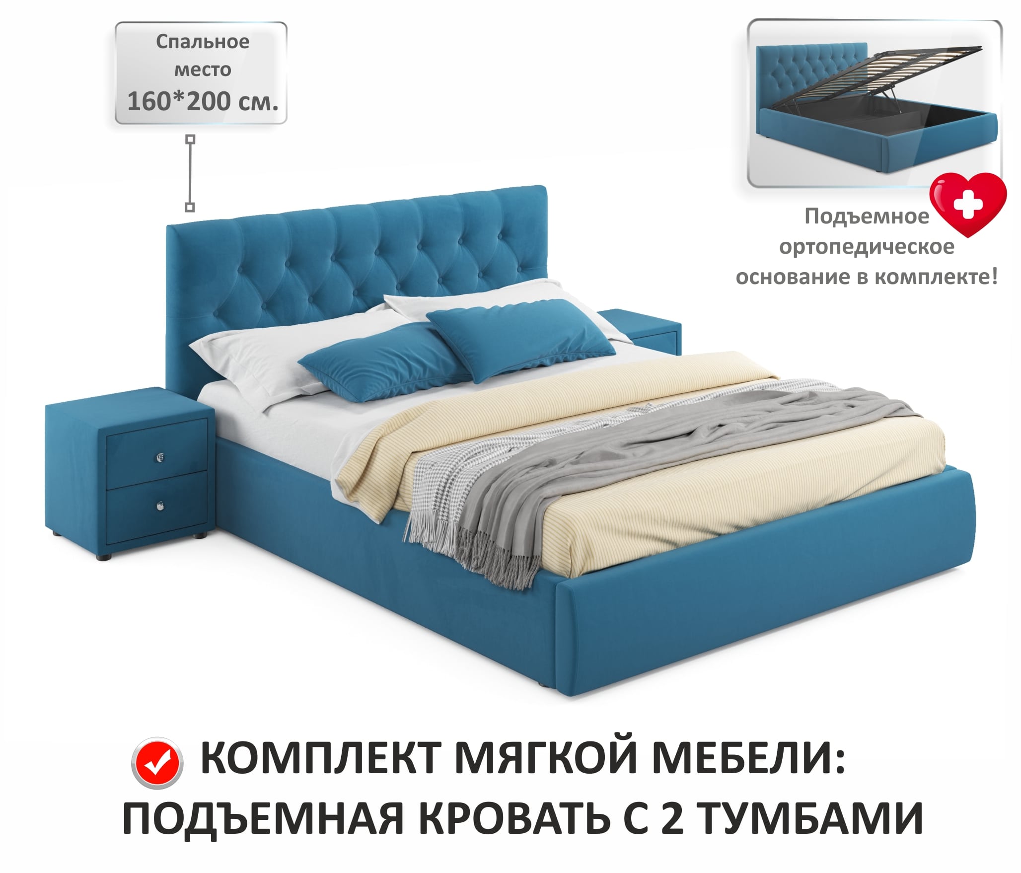Отзывы о Столплит Мягкая кровать с тумбами Verona 1600 подъемная Синий