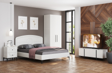 Комплект белой мебели для спальни Валенсия № 35 состоит из двухспальной кровати, тумбы прикроватной, двух шкафов-пеналов и тумбы под ТВ. Основным декоративным элементом является круг представленный фрезеровкой на фасаде в изголовье кровати. Выбирая двуспальную кровать Валенсия 11.36.01 со спальным местом 1600х2000 мм, Вы выбираете крепкий сон и уют. Ортопедическое основание 1600х2000 мм. с гнутоклееными ламелями входит в комплект, матрас приобретаются отдельно. Углубление под матрас - 100 мм. Рекомендованная высота матраса от 100 до 220 мм. Максимально допустимая нагрузка на 1 спальное место - 100 кг. Тумба прикроватная Валенсия 13.291 оборудована двумя удобными выдвижными ящикам. Ящики тумбы установлены на направляющие скрытого монтажа с доводчиками. Два пенала объеденены в единый блок. Внутреннее наполнение пенала (в комплекте 2 шт.) Вы определяете сами, есть возможность расположить внутри - 5 полочек или штангу для одежлы на плечиках и две полки верхнюю и нижнюю. Пять полок внутри шкафа-пенала позволят обустроить библиотеку, а штанга для одежды с 2-мя полками - мини-гардеробную. Распашная дверь закреплена четырёхшарнирных петлях, продлевающих время службы мебели. Современная тумба под ТВ Квадро 13.276 придётся по вкусу любителям чёрно-белых акцентов в оформлении интерьера. Сдержанный дизайн, классическое сочетание цвета и материалов выдержаны в минималистическом стиле. Особый акцент данной модели - наличие металлических деталей, опор из окрашенного металла и декоративные элементы на фасадной части тумбы из анодированного алюминия. Наличие таких прочных элементов в конструкции тумбы значительно увеличивают её надёжность, прочность и долговечность. Этому же способствует и основной материал тумбы - ламинированная ДСП толщиной 22 мм. и 16 мм. с кромкой ПВХ 2 мм. и 1 мм. Конструктивно тумба разделена на два отделения, каждое - за парой распашных дверей с одной полочкой внутри. Ширина дверей одинакова. Закреплены дверки на четырёхшарнирных петлях. Верхний горизонт оборудован вырезом для размещения проводов мультимедиа аппаратуры. Опоры регулируются по высоте, что позволяет компенсировать неровность пола, и наделены пластиковыми подпятниками, что сохранит Ваше напольное покрытие от повреждений. Мебель выполнена из экологически чистой ламинированной ДСП 16 мм, класса эмиссии Е1, детали обработаны ПВХ-кромкой. Визуально плита ДСП имеет глубокое тиснение шагрень, а белый цвет фасадов удачно подчёркивает его. Фасады выполнены из с матовой ПВХ-плёнкой. Такое решение делает мебель визуально более "мягкой", комфортной и расслабляющей, что особенно актуально для спальни. Установлена мебель Валенсия на высокие ножки, что делает конструкцию лёгкой и воздушной и практичной в плане уборки. В производстве спальни Валенсия использована фурнитура высоких стандартов. Поставляется в разобранном виде в надёжной упаковке, с комплектом сборочной фурнитуры и инструкцией по сборке.