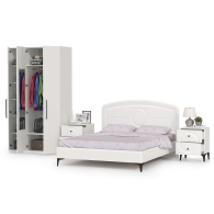 3-х дверный шкаф с кроватью на 1600 Валенсия и двумя тумбочками - стильная светлая спальня в популярном стиле ар-деко.