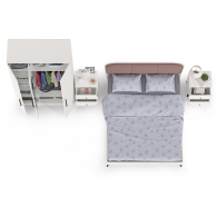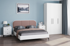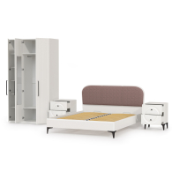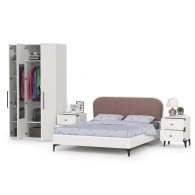 3-х дверный шкаф с кроватью с мягкой спинкой Валенсия 1600 и двумя тумбочками - стильная светлая спальня в популярном стиле ар-деко.