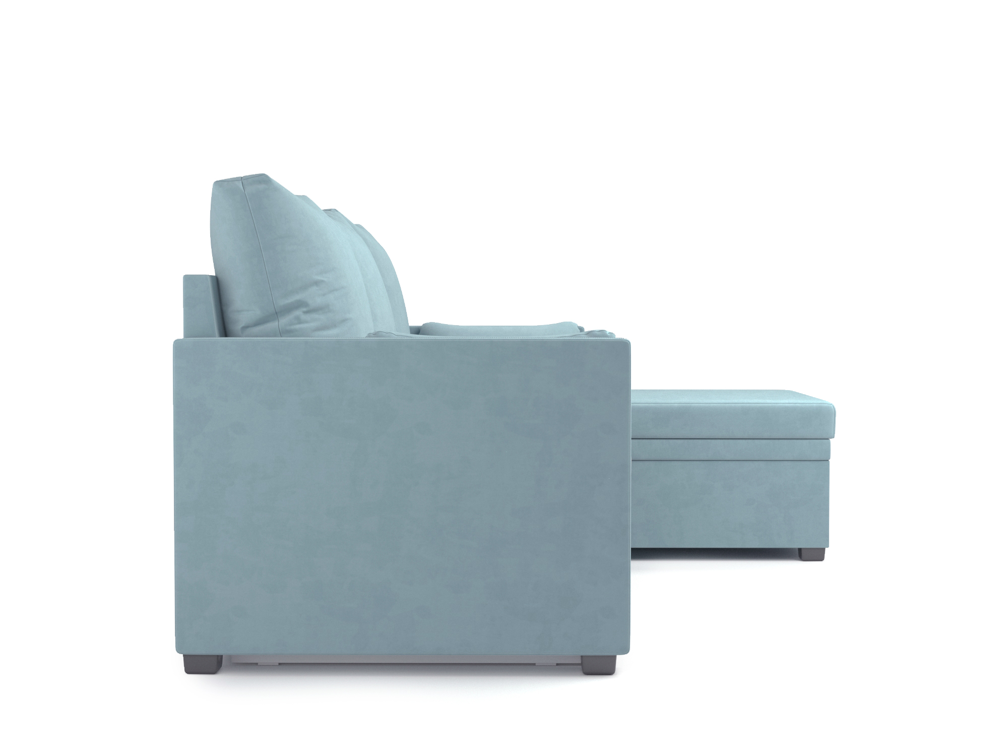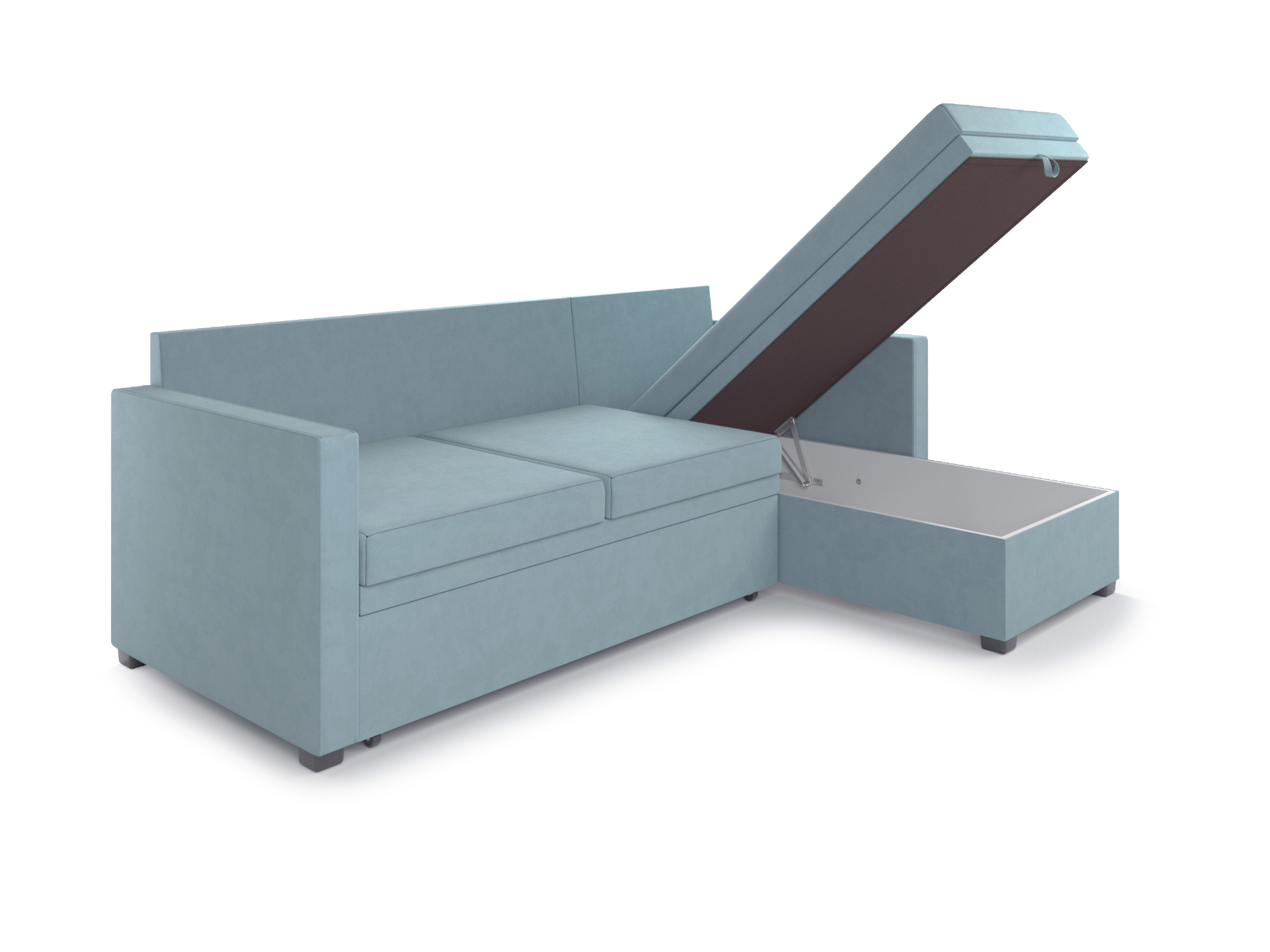 Удобство использования дивана «Париж» дополняется ящиком для хранения, который расположен внутри угловой части. В него можно положить небольшие вещи или постельные принадлежности, сохраняя порядок и экономя пространство.