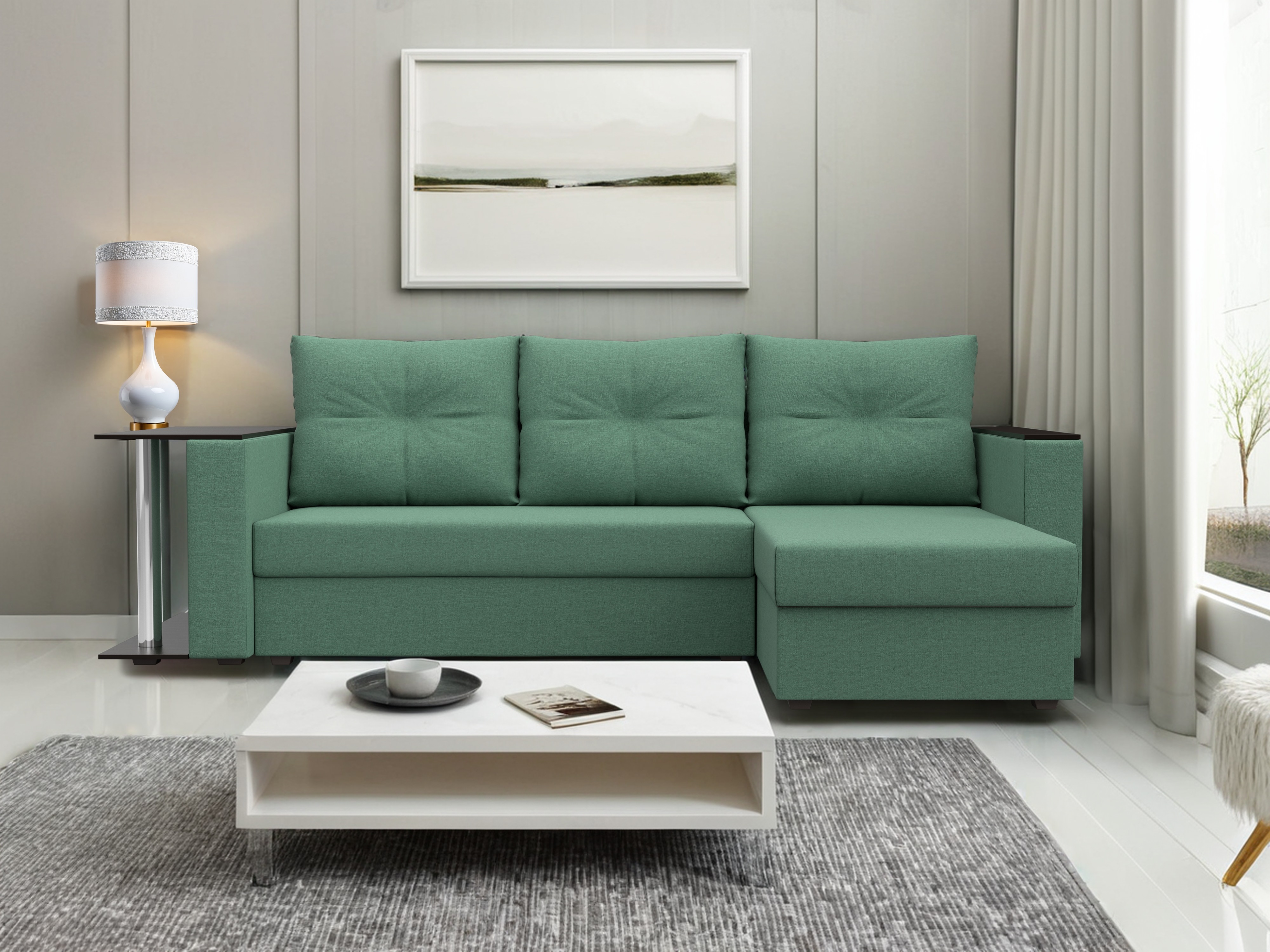 Угловой диван Атланта правый угол, рогожка Амур (Зеленый) Код I0000401270