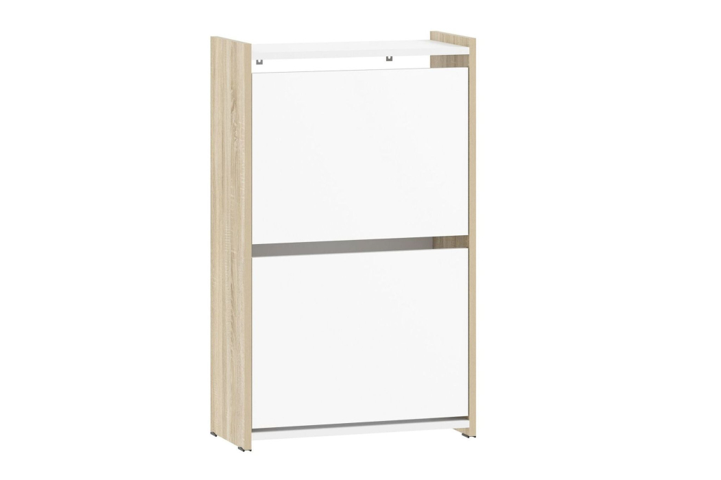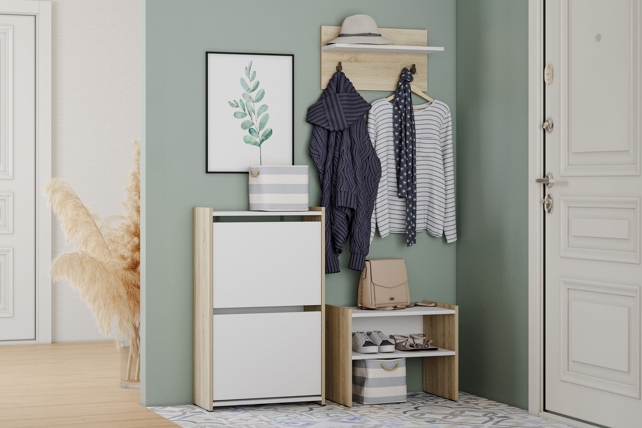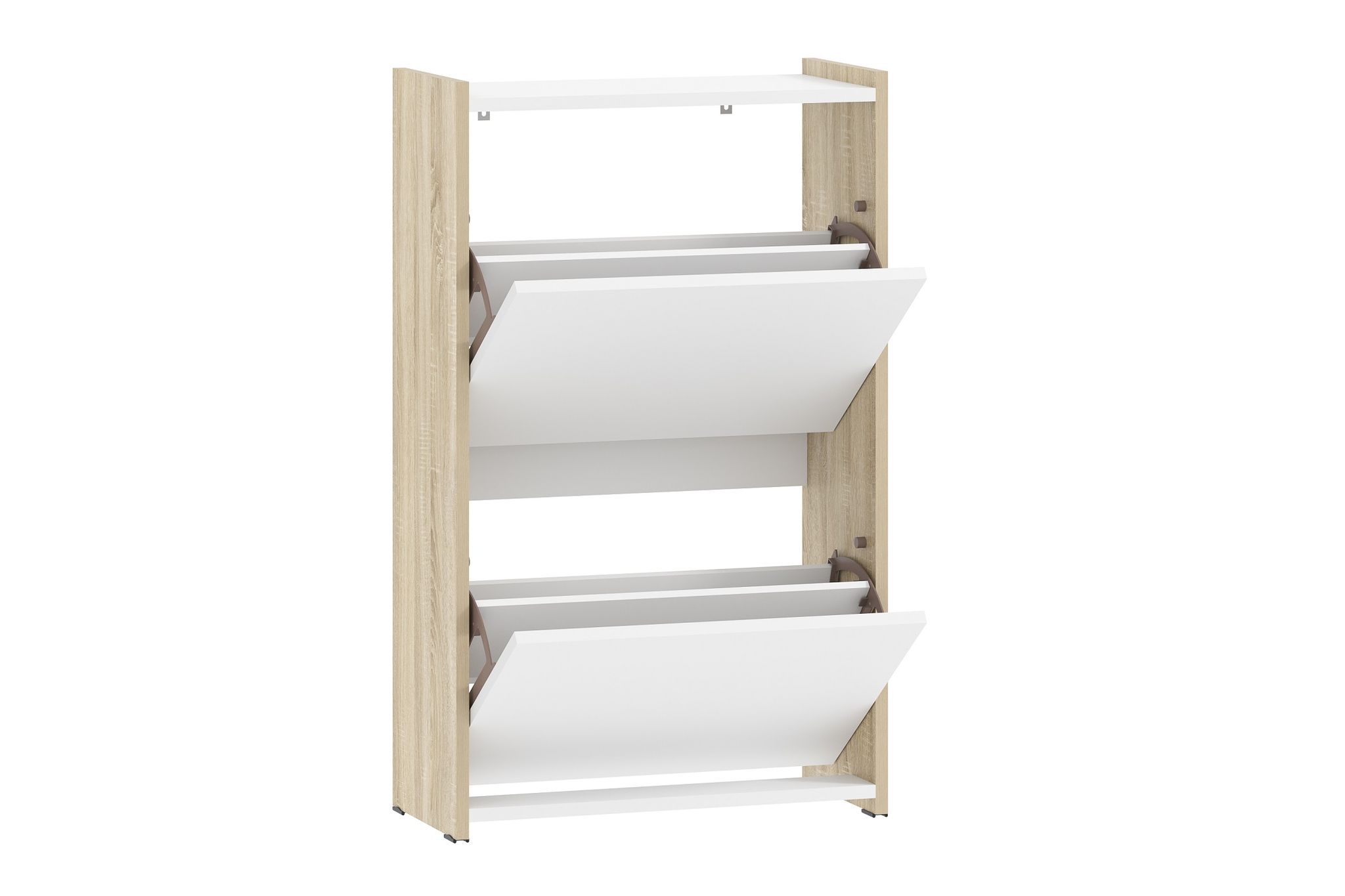 Тумба для обуви из серии Симпл подойдет для небольших прихожих и гардеробных. Конструкция содержит 2 откидные секции для хранения обуви.