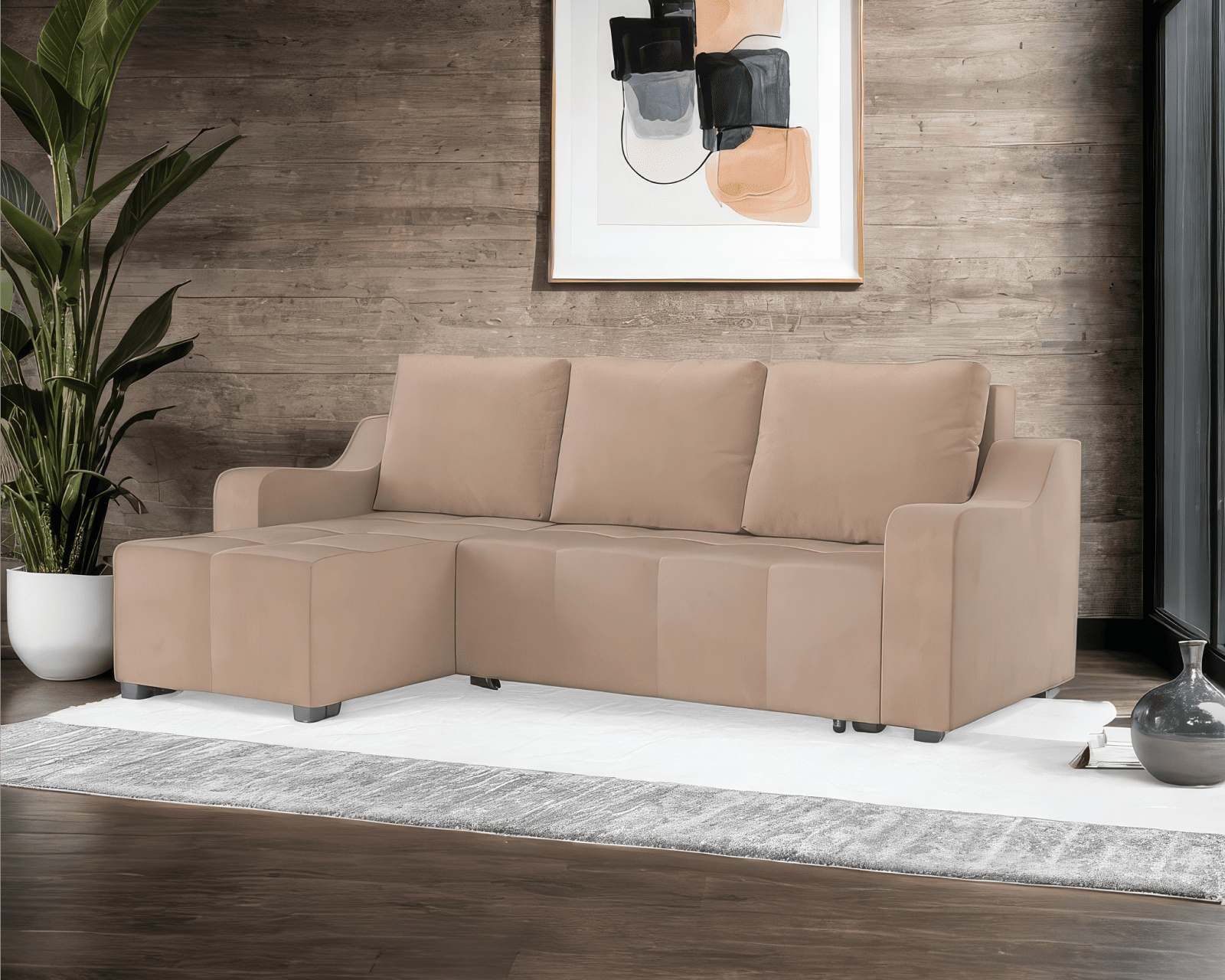 Угол дивана является универсальным, позволяя вам расположить оттоманку по вашему удобству. Оттоманка также идеально подходит для хранения вещей и предметов быта.
