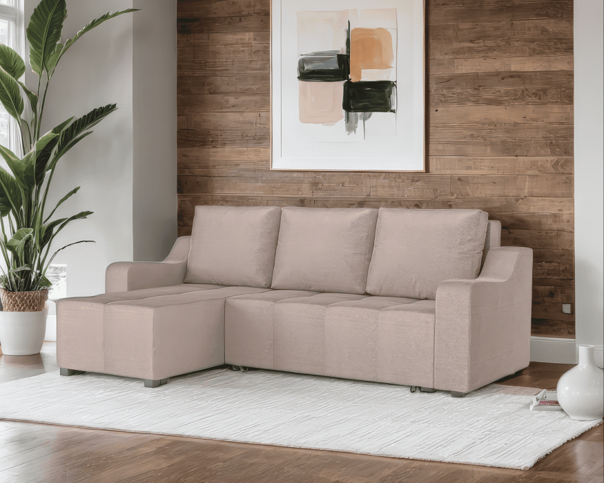 Угол дивана является универсальным, позволяя вам расположить оттоманку по вашему удобству. Оттоманка также идеально подходит для хранения вещей и предметов быта.