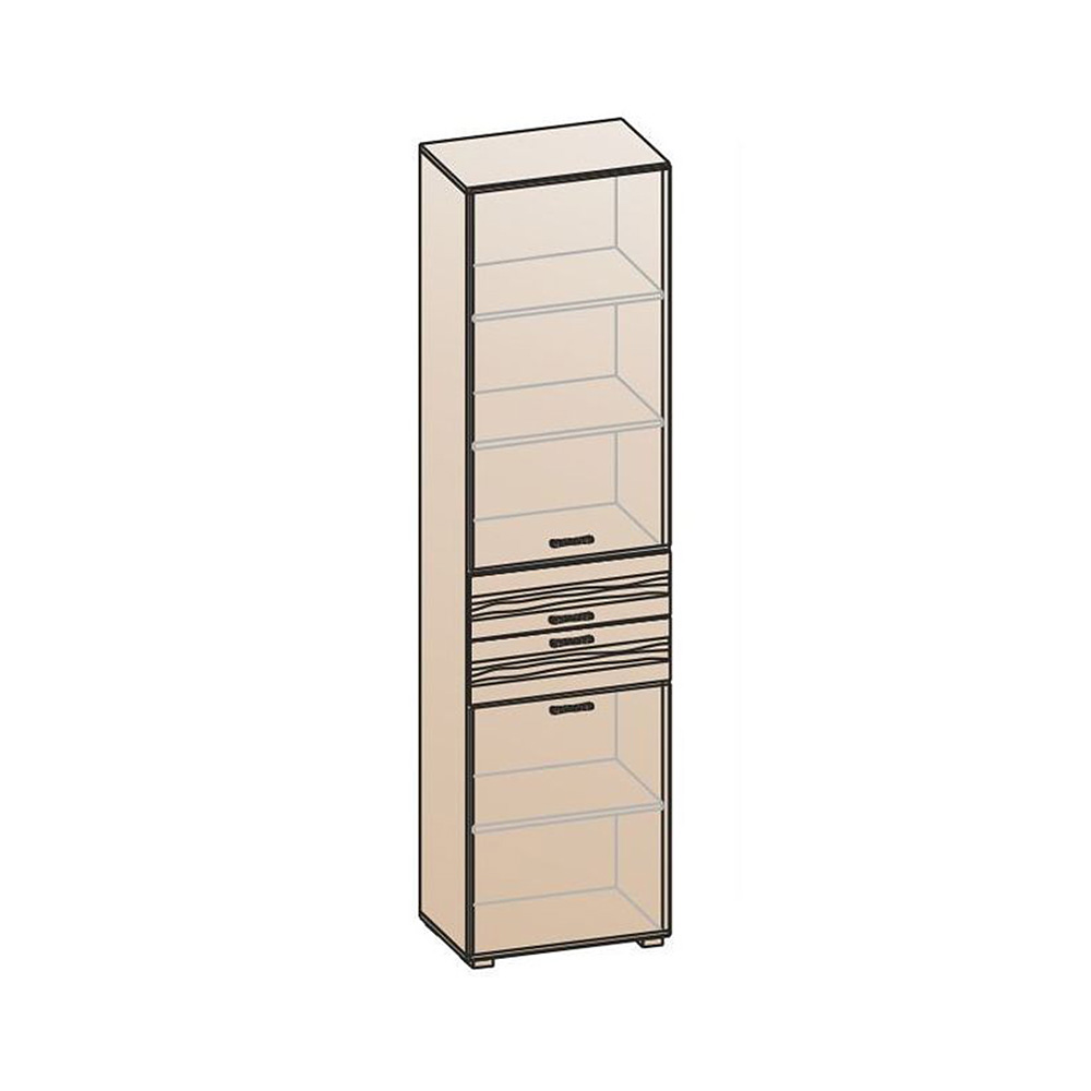 Неглубокий пенал из комплекта модульной гостиной Лотос, может быть приобретён и отдельно. Внутри полки. В средней части два выдвижных ящика. Регулируемые опоры L-20. Ручка 96 мм.