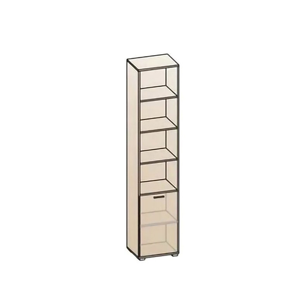Вариант пенала из комплекта модульной гостиной Лотос. Отличие от другого стеллажа серии в том, что две нижние полки закрыты дверцей. Регулируемые опоры L-20. Ручка 96 мм. Можно приобрести и отдельно.