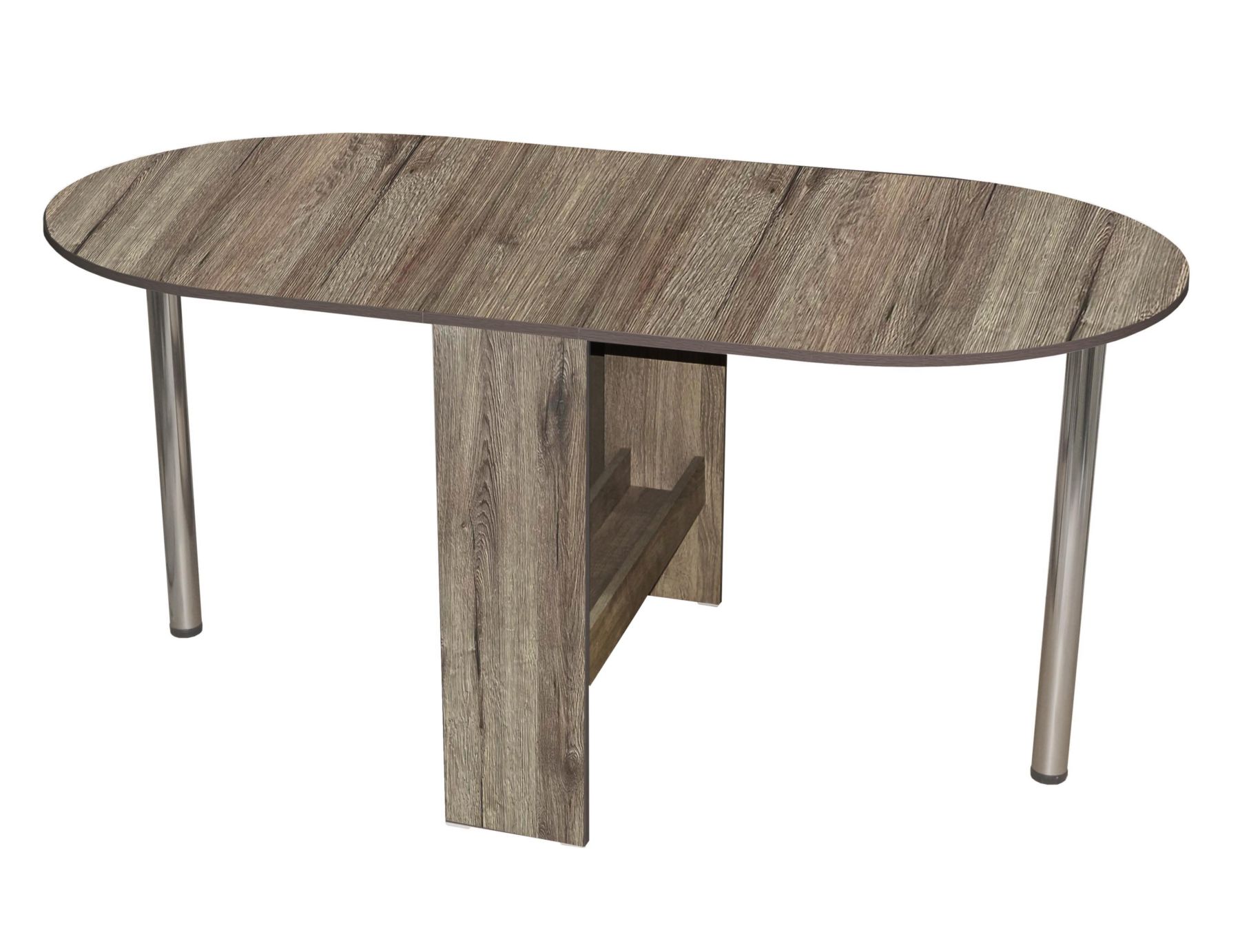 Стол-книжка СКТ-60 дуб сонома для кухни и гостиной. Стол легко разложить при необходимости. У стола овальная форма столешницы. Размер стола в разложенном виде 830 х 1600 мм, в сложенном виде 200 х 830 мм