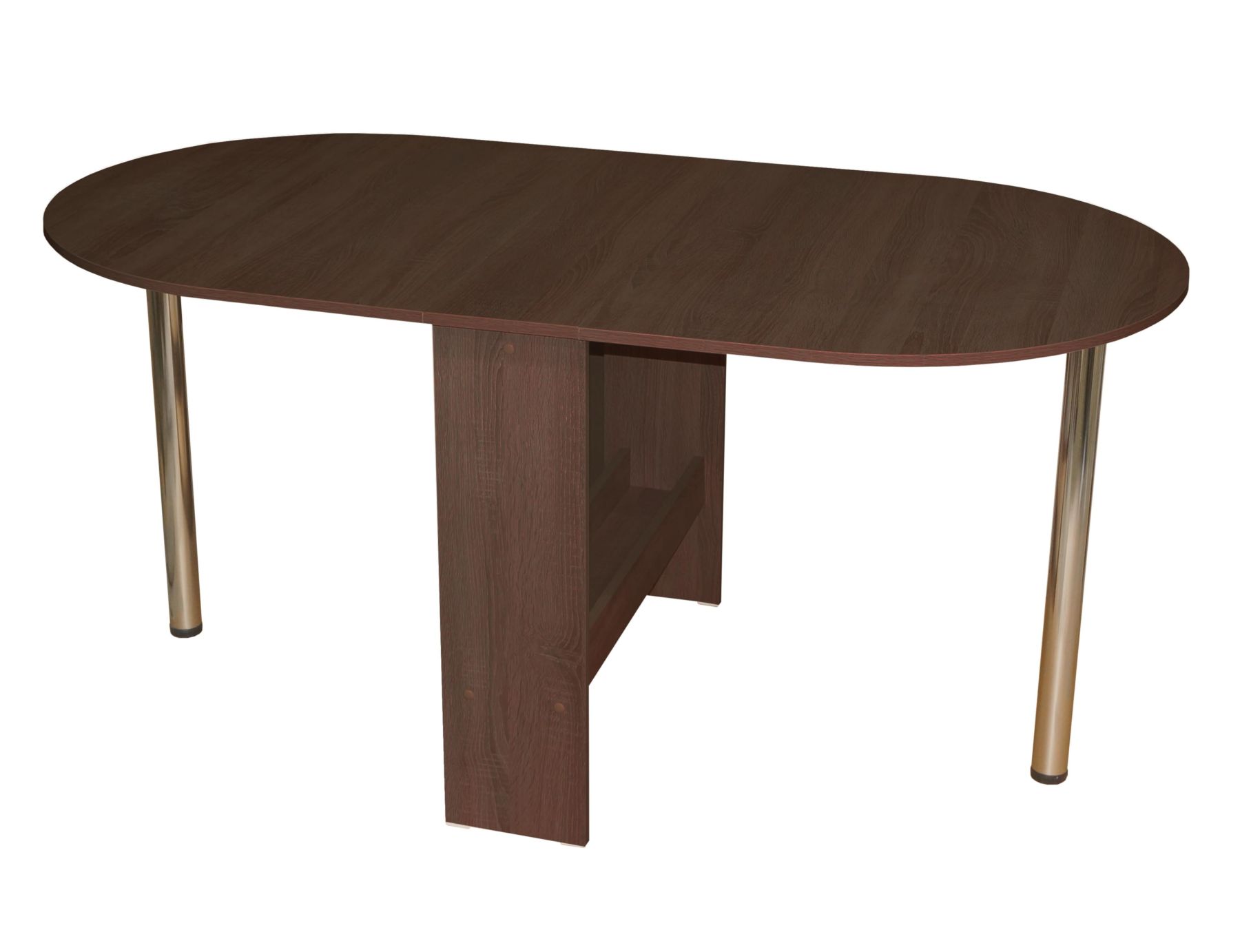 Стол изготовлен из ЛДСП высокого качества. Толщина столешницы 16 мм. Стол раскладной с использованием карточной петли. Ножки круглые хромированные диаметром 50 мм.