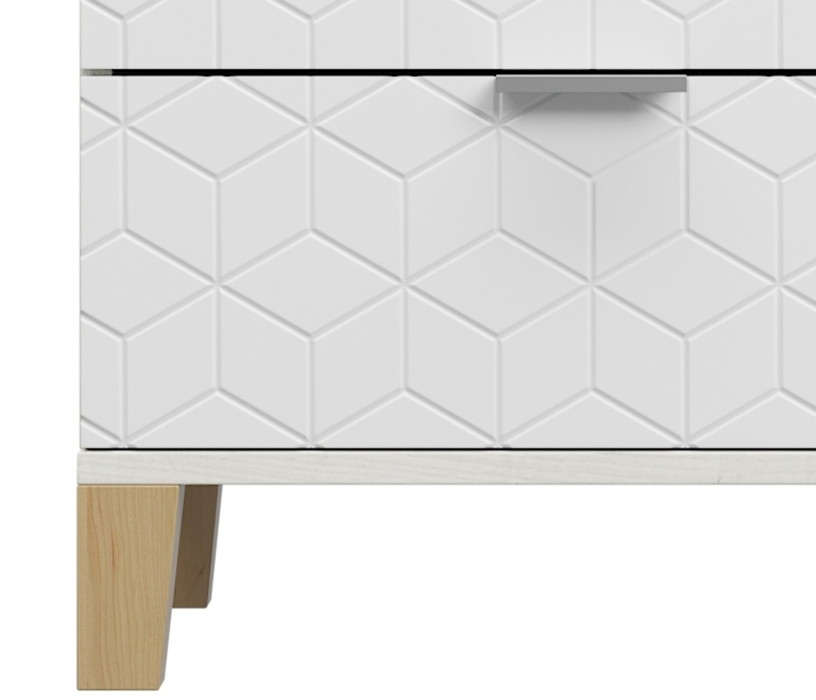 Тумба прикроватная Йорк выполнена в скандинавском стиле, органично дополняет интерьер любой комнаты. Геометрическая фрезеровка на фасадах, сочетание цветов - отличительная черта данной серии.