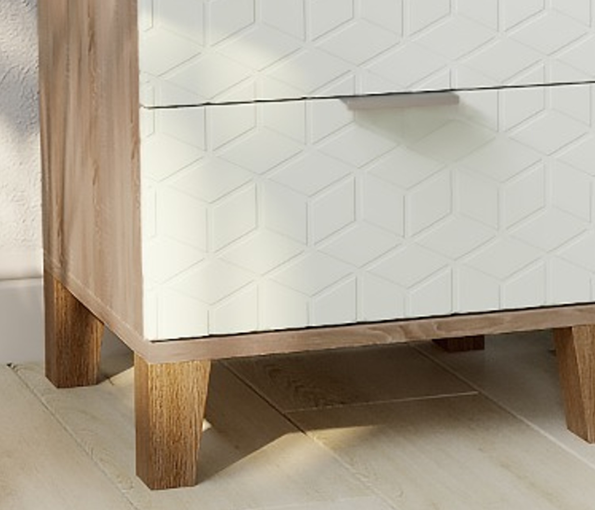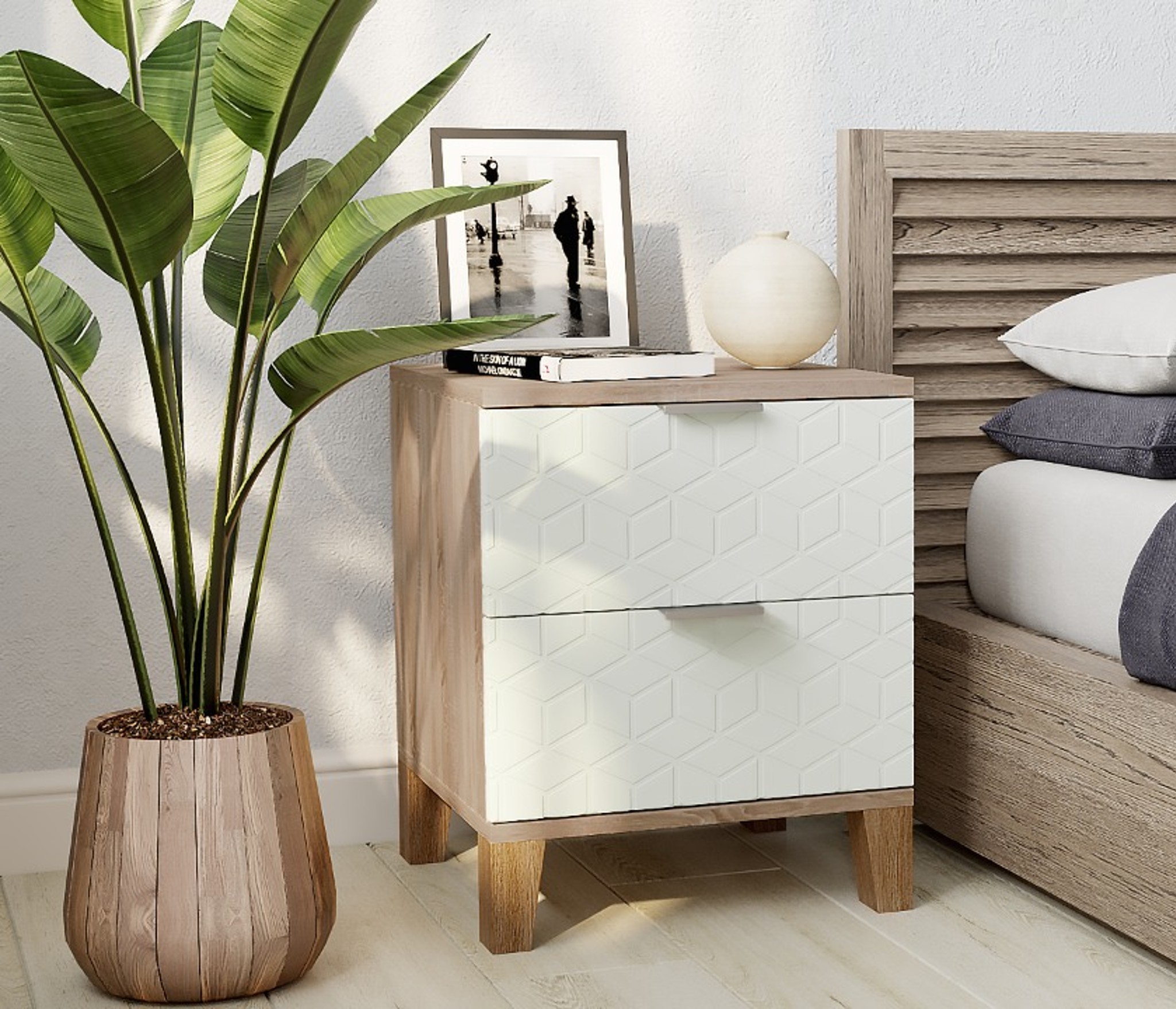 Тумба прикроватная Йорк выполнена в скандинавском стиле, органично дополняет интерьер любой комнаты. Геометрическая фрезеровка на фасадах, сочетание цветов - отличительная черта данной серии.