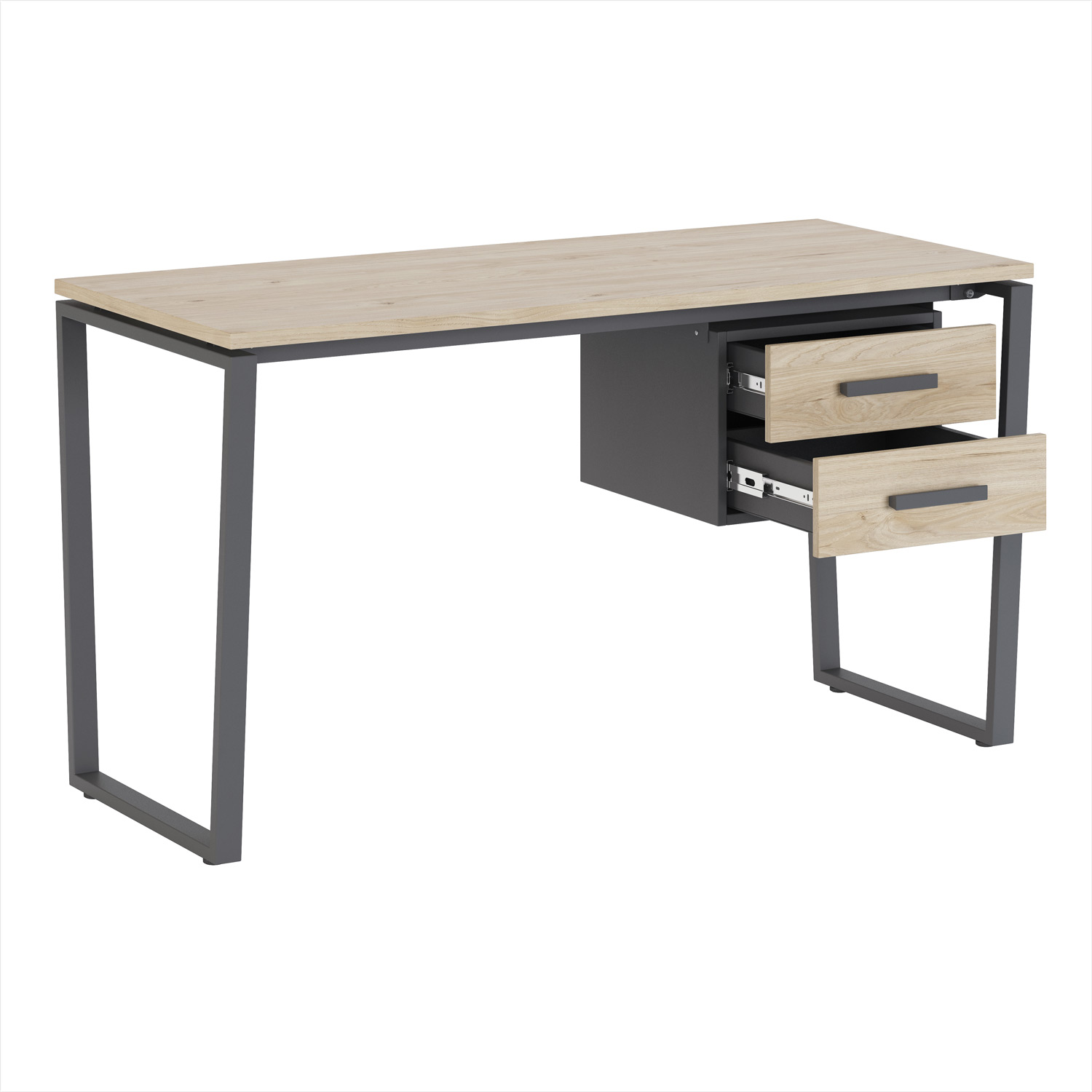 Имеет два выдвижных ящика на шариковых направляющих полного выдвижения.