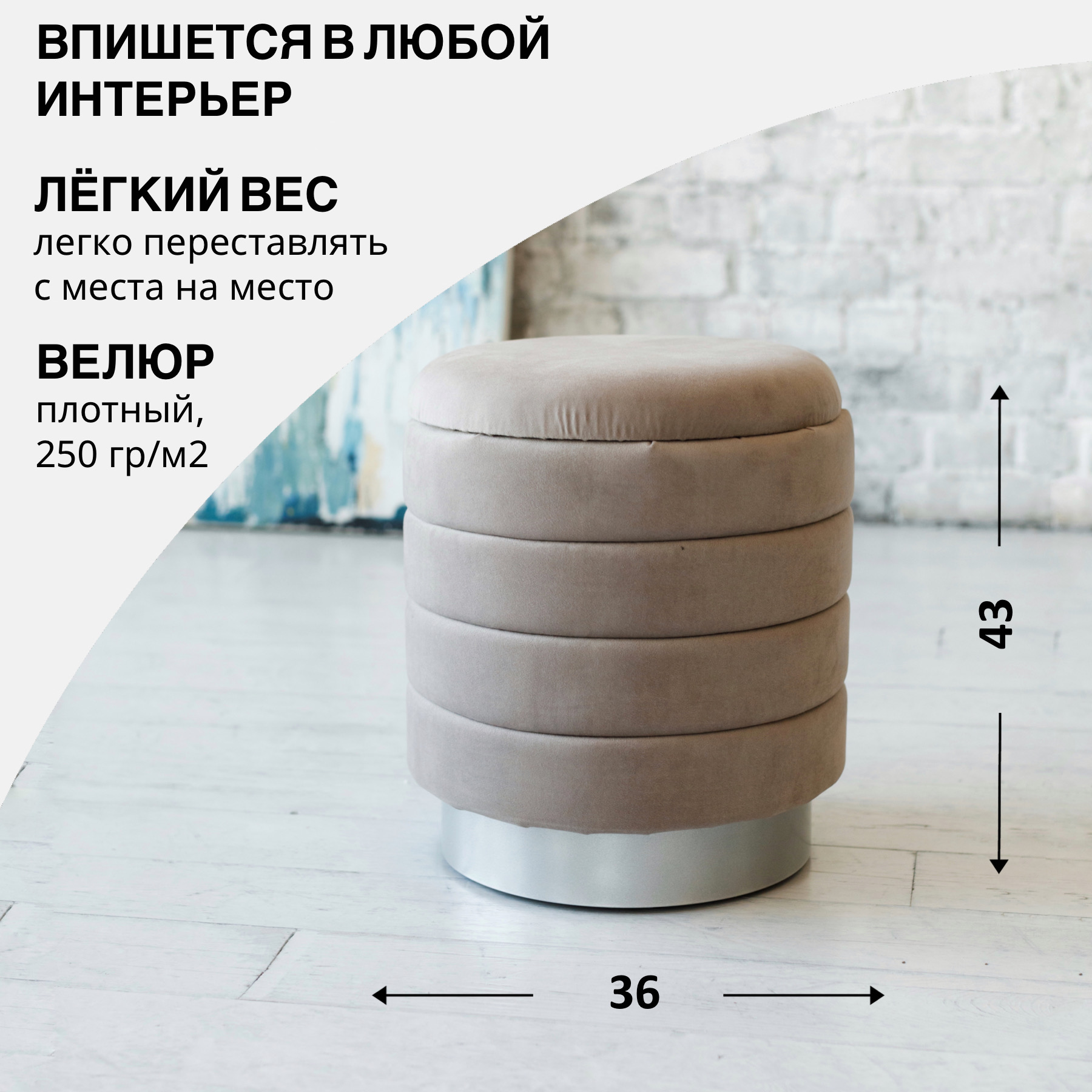 Отзывы о Столплит Пуф Лагуна, Велюр Серый