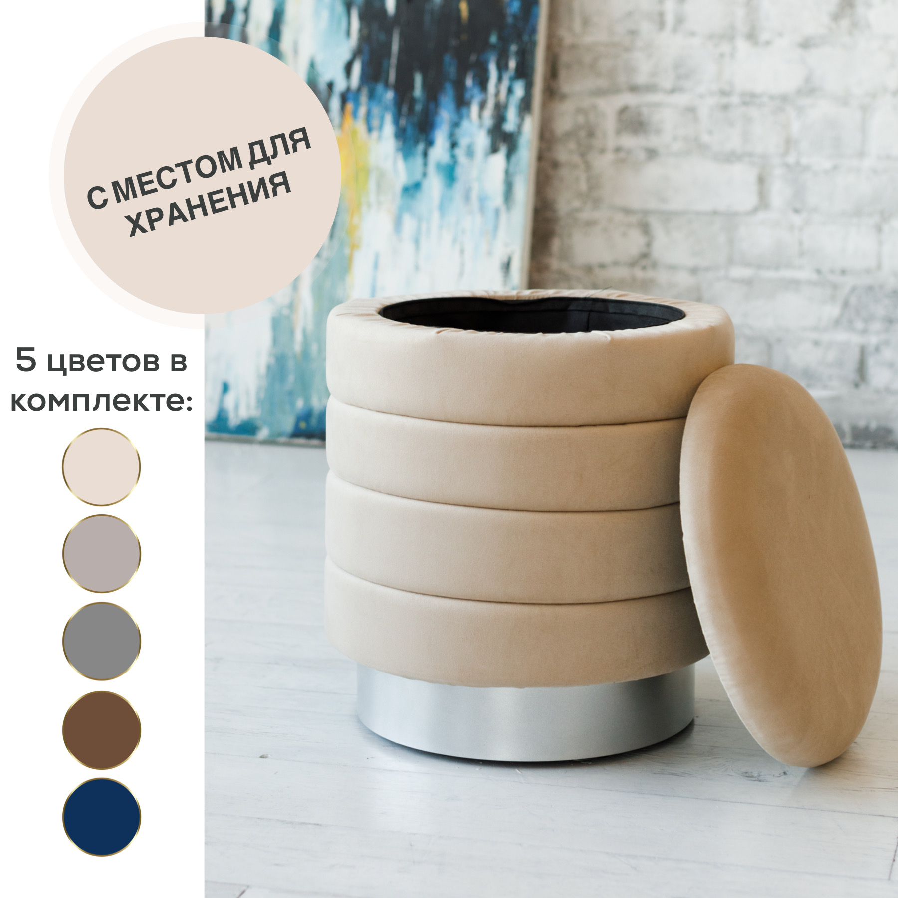 В пуфе имеется отделение для хранения вещей.