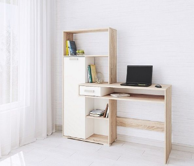 Стол компьютерный Квартет-8 (Дуб Сонома, Белый) Код I0000326246