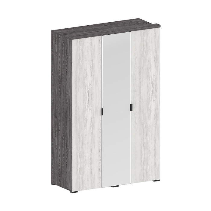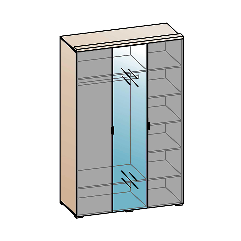 Прямой распашной шкаф имеет три двери (две глухих, одну зеркальную)