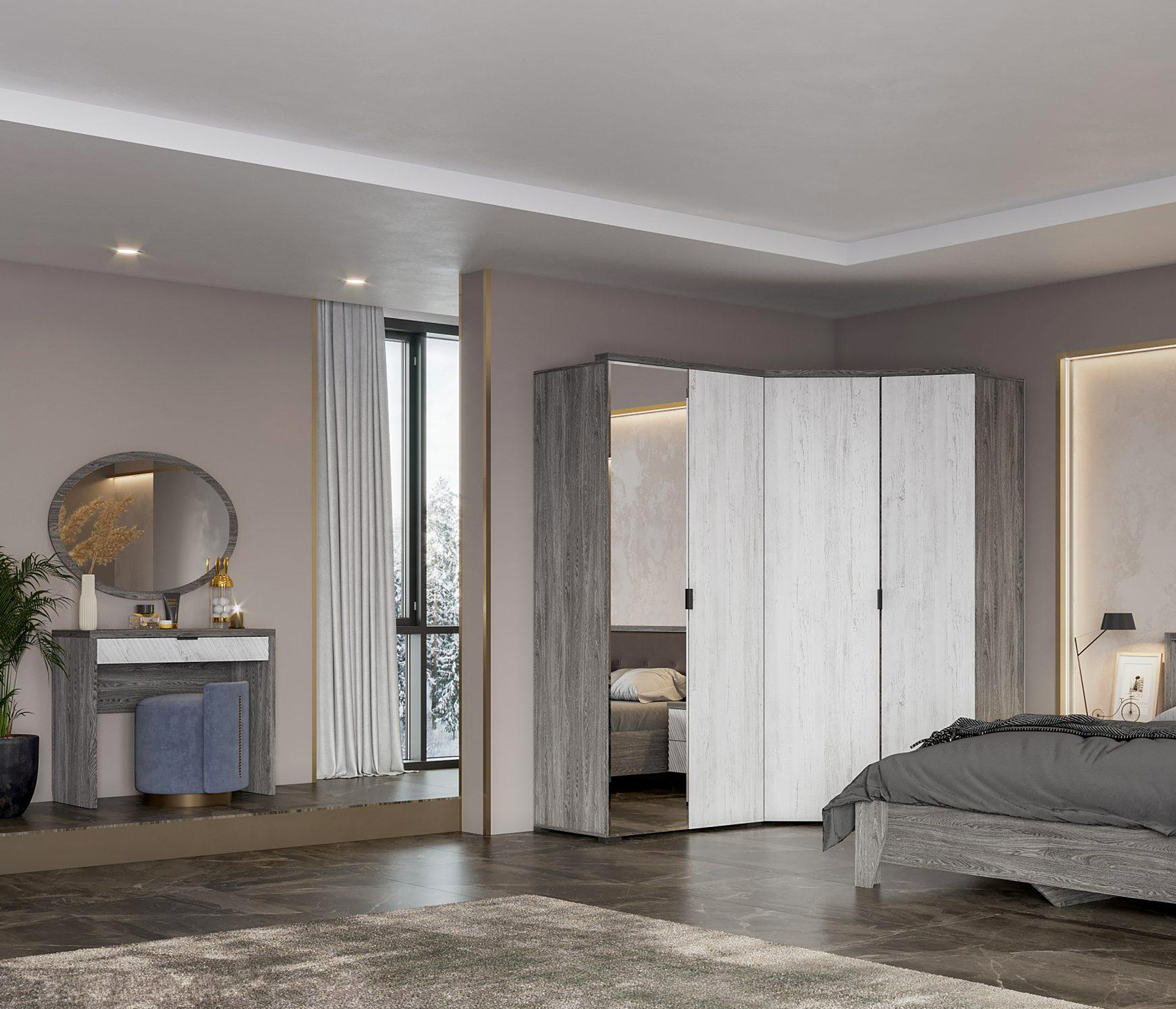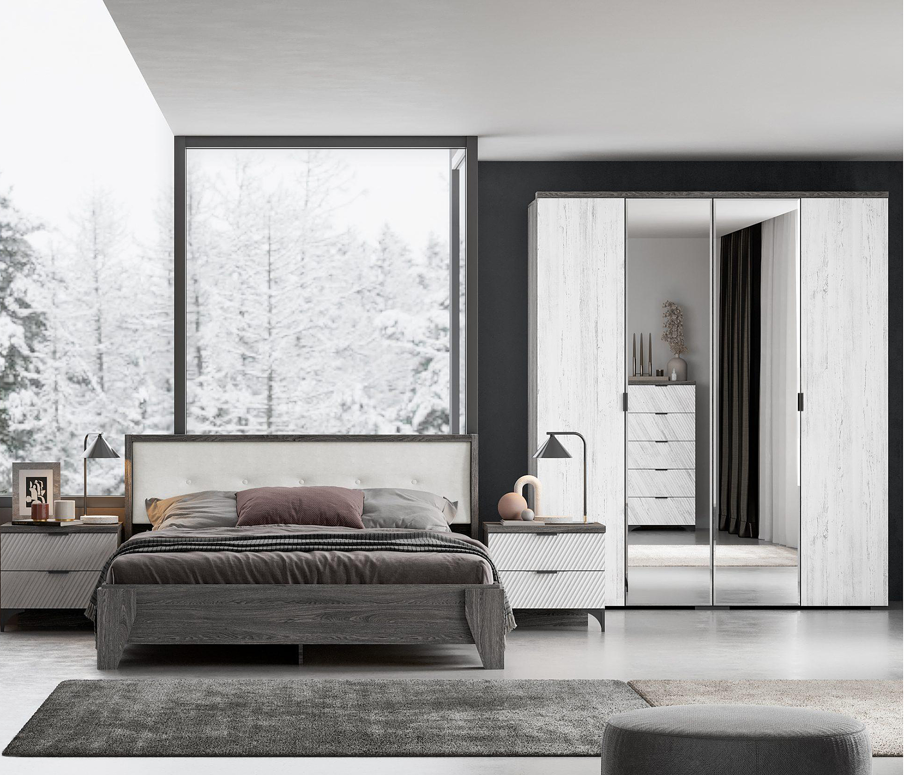 Новые современные цвета: черный ясень — это глубокий серый, легкий и одновременно динамичный цвет в сочетании с санторини белым — цвет с древесными линиями, создающими гармоничный контраст, наполняя пространство воздухом и природной энергией.