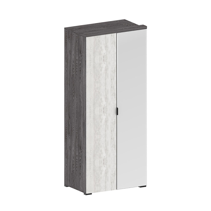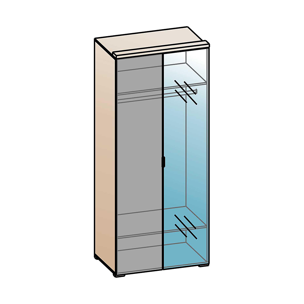Прямой распашной шкаф имеет две двери (одну глухую, одну зеркальную)