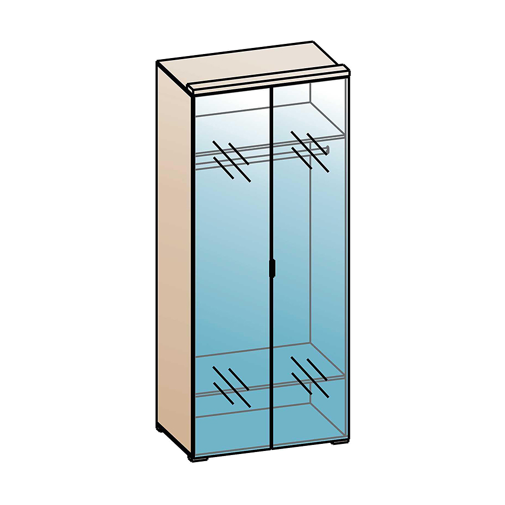 Прямой распашной шкаф имеет две двери (две зеркальных)