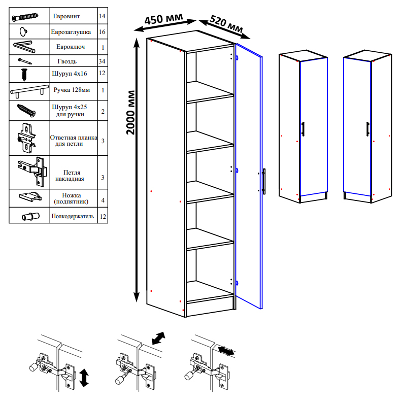 Габаритные размеры пенала (ШхГхВ): 45х52х200 см.