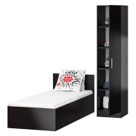 Комплект состоит из односпальной кровати и пенала. Функциональность, компактность и простота формы - три слагаемые дизайнерской идеи кровати Стандарт 0800. Классическая геометрия и спокойный природный тон кровати поддержат базовый интерьер, легко сочетаясь с мебелью любого стиля. В комнату с такой нейтральной обстановкой легко добавить индивидуальности, расставив акценты с помощью креативных аксессуаров. Односпальная кровать Стандарт 800 - надёжная, с устойчивым основанием и удобной спинкой, идеально подходит для детской комнаты. Сп.м. 800х2000 мм, основание в комплекте (настил ДСП), матрас 800х2000 мм. приобретается отдельно. Определённый интерес кровать Стандарт 800 представляет и для обустройства гостиничных номеров, пансионатов, детских лагерей. Высокий шкаф-пенал, за распашной дверкой которого расположены четыре съёмные полки. Универсальная дверь - сторону открывания двери Вы определятете при сборке. Кровать односпальная 800 с пеналом Стандарт поможет создать универсальный интерьер, который будет жить вне времени и моды, без необходимости обновления. Элегантная простота и эргономичность кровати, в сочетании с идеальным качеством исполнения, обещают удовольствие на долгие годы. Кровать односпальная 800 с пеналом Стандарт выполнены из экологически чистой ламинированной ДСП с классом эмиссии Е1, допустимым для детской мебели. В производстве мебели использована фурнитура высоких стандартов и обработка деталей противоударной кромкой ПХВ. Поставляется мебель в разобранном виде в надёжной упаковке, с комплектом фурнитуры и инструкцией по сборке.