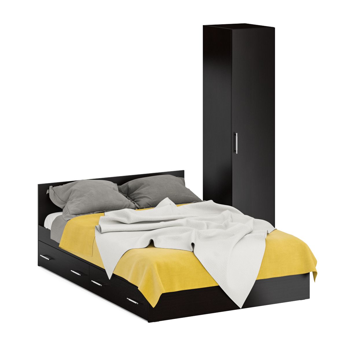 Комплект состоит из двуспальной кровати с ящиками и пенала. Функциональность, компактность и простота формы - три слагаемые дизайнерской идеи кровати Стандарт. Классическая геометрия и спокойный природный тон кровати поддержат базовый интерьер, легко сочетаясь с мебелью любого стиля. В комнату с такой нейтральной обстановкой легко добавить индивидуальности, расставив акценты с помощью креативных аксессуаров. Двуспальная кровать с ящиками 1400 - надёжная, с устойчивым основанием и удобной спинкой, идеально подходит для детской комнаты. Сп.м. 1400х2000 мм, основание в комплекте (настил ДСП), матрас 1400х2000 мм. приобретается отдельно. В основании кровати расположены два вместительных ящика для хранения постельных принадлежностей и личных вещей. Определённый интерес мебель Стандарт представляет и для обустройства гостиничных номеров, пансионатов, детских лагерей. Высокий шкаф-пенал, за распашной дверкой которого расположены четыре съёмные полки. Универсальная дверь - сторону открывания двери Вы определятете при сборке. Двуспальная кровать с ящиками 1400 с пеналом Стандарт поможет создать универсальный интерьер, который будет жить вне времени и моды, без необходимости обновления. Элегантная простота и эргономичность кровати, в сочетании с идеальным качеством исполнения, обещают удовольствие на долгие годы. Двуспальная кровать с ящиками 1400 с пеналом Стандарт выполнены из экологически чистой ламинированной ДСП с классом эмиссии Е1, допустимым для детской мебели. В производстве мебели использована фурнитура высоких стандартов и обработка деталей противоударной кромкой ПХВ. Поставляется мебель в разобранном виде в надёжной упаковке, с комплектом фурнитуры и инструкцией по сборке.