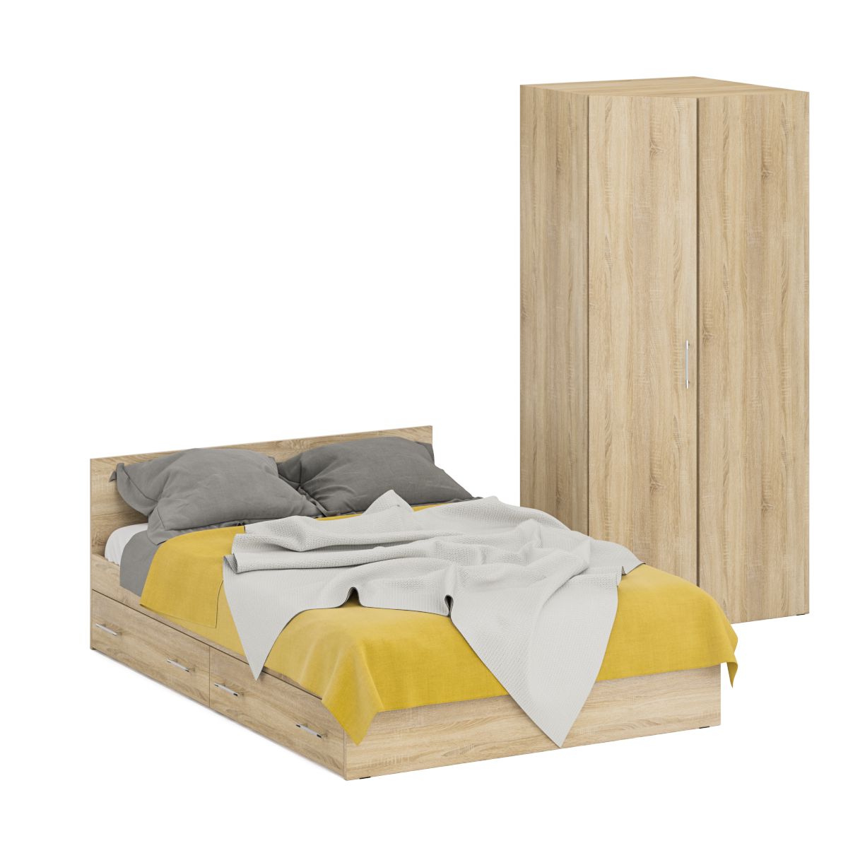 Комплект состоит из двуспальной кровати с ящиками и шкафа углового. Функциональность, компактность и простота формы - три слагаемые дизайнерской идеи кровати Стандарт. Классическая геометрия и спокойный природный тон кровати поддержат базовый интерьер, легко сочетаясь с мебелью любого стиля. В комнату с такой нейтральной обстановкой легко добавить индивидуальности, расставив акценты с помощью креативных аксессуаров. Кровать Стандарт - надёжная, с устойчивым основанием и удобной спинкой, идеально подходит для детской комнаты. Сп.м. 1400х2000 мм, основание в комплекте (настил ДСП), матрас 1400х2000 мм. приобретается отдельно. В основании кровати расположены два вместительных ящика для хранения постельных принадлежностей и личных вещей. Определённый интерес мебель Стандарт представляет и для обустройства гостиничных номеров, пансионатов, детских лагерей. За распашной дверкой шкафа углового расположены два отделения - со штангой для одежды на плечиках и антресольной полкой с одной стороны, и нишей с тремя полками с другой. Универсальная сборка - сторону открывания двери и располажение отделений внутри шкафа - Вы определятете при сборке. Боковина шкафа углового для соединения с другой мебелью имеет глубину 52 см. Двуспальная кровать с ящиками 1400 с угловым шкафом Стандарт поможет создать универсальный интерьер, который будет жить вне времени и моды, без необходимости обновления. Элегантная простота и эргономичность кровати, в сочетании с идеальным качеством исполнения, обещают удовольствие на долгие годы. Двуспальная кровать с ящиками 1400 с угловым шкафом Стандарт выполнены из экологически чистой ламинированной ДСП с классом эмиссии Е1, допустимым для детской мебели. В производстве мебели использована фурнитура высоких стандартов и обработка деталей противоударной кромкой ПХВ. Поставляется мебель в разобранном виде в надёжной упаковке, с комплектом фурнитуры и инструкцией по сборке.