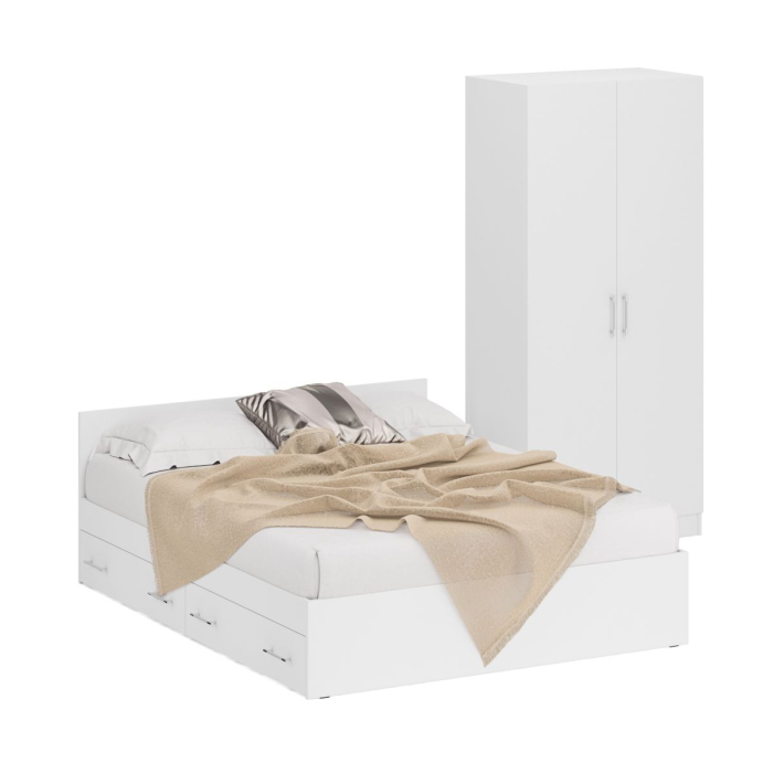 Двуспальная кровать с ящиками 1600 со шкафом для одежды 2-х створчатым Стандарт - эталон практичности для небольшой спальни!