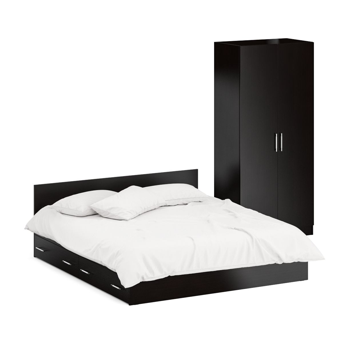 Отзывы о Столплит Двуспальная Кровать с ящиками 1800 со шкафом для одежды 2-х створчатым Стандарт Венге
