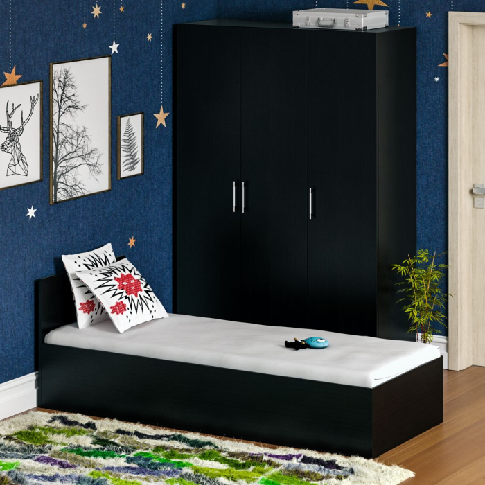 Спальный гарнитур № 1 состоит из односпальной кровати, 2-х створчатого шкафа для одежды и пенала, объединенных в единый блок. Функциональность, компактность и простота формы - три слагаемые дизайнерской идеи спален Стандарт. Классическая геометрия и спокойный природный тон мебели Стандарт поддержат базовый интерьер, легко сочетаясь с мебелью любого стиля. В комнату с такой нейтральной обстановкой легко добавить индивидуальности, расставив акценты с помощью креативных аксессуаров. Кровать Стандарт - надёжная, с устойчивым основанием и удобной спинкой, идеально подходит для детской комнаты. Сп.м. 800х2000 мм, основание в комплекте (настил ДСП), матрас 800х2000 мм. приобретается отдельно. Определённый интерес мебель Стандарт представляет и для обустройства гостиничных номеров, пансионатов, детских лагерей. За распашными дверками шкафа для одежды расположены отделение со штангой для одежды на плечиках и антресольной полкой с одной стороны, и нишей с тремя полками с другой. Высокий пенал, за распашной дверкой которого расположены четыре съёмные полки. Универсальная дверь - сторону открывания двери Вы определятете при сборке. Спальный гарнитур № 1 имеет универсальный интерьер, который будет жить вне времени и моды, без необходимости обновления. Элегантная простота и эргономичность кровати, в сочетании с идеальным качеством исполнения, обещают удовольствие на долгие годы. Спальный гарнитур № 1 выполнен из экологически чистой ламинированной ДСП с классом эмиссии Е1, допустимым для детской мебели. В производстве мебели использована фурнитура высоких стандартов и обработка деталей противоударной кромкой ПХВ. Поставляется мебель в разобранном виде в надёжной упаковке, с комплектом фурнитуры и инструкцией по сборке.