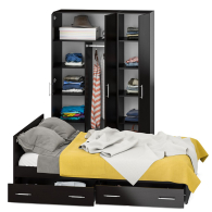 Спальный гарнитур № 1 состоит из двухспальной кровати с ящиками, 2-х створчатого шкафа для одежды и пенала, объединенных в единый блок. Функциональность, компактность и простота формы - три слагаемые дизайнерской идеи спален Стандарт. Классическая геометрия и спокойный природный тон мебели Стандарт поддержат базовый интерьер, легко сочетаясь с мебелью любого стиля. В комнату с такой нейтральной обстановкой легко добавить индивидуальности, расставив акценты с помощью креативных аксессуаров. Кровать Стандарт - надёжная, с устойчивым основанием и удобной спинкой, идеально подходит для детской комнаты. Сп.м. 1400х2000 мм, основание в комплекте (настил ДСП), матрас 1400х2000 мм. приобретается отдельно. В основании кровати расположены два вместительных ящика для хранения постельных принадлежностей и личных вещей. Определённый интерес мебель Стандарт представляет и для обустройства гостиничных номеров, пансионатов, детских лагерей. За распашными дверками шкафа для одежды расположены отделение со штангой для одежды на плечиках и антресольной полкой с одной стороны, и нишей с тремя полками с другой. Высокий пенал, за распашной дверкой которого расположены четыре съёмные полки. Универсальная дверь - сторону открывания двери Вы определятете при сборке. Спальный гарнитур № 1 имеет универсальный интерьер, который будет жить вне времени и моды, без необходимости обновления. Элегантная простота и эргономичность кровати, в сочетании с идеальным качеством исполнения, обещают удовольствие на долгие годы. Спальный гарнитур № 1 выполнен из экологически чистой ламинированной ДСП с классом эмиссии Е1, допустимым для детской мебели. В производстве мебели использована фурнитура высоких стандартов и обработка деталей противоударной кромкой ПХВ. Поставляется мебель в разобранном виде в надёжной упаковке, с комплектом фурнитуры и инструкцией по сборке.