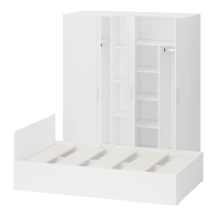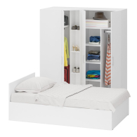 Гарнитур Спальный № 2 состоит из односпальной кровати и двух шкафов объединенных в единый блок - 2-х створчатого и углового. Функциональность, компактность и простота формы - три слагаемые дизайнерской идеи спален Стандарт. Классическая геометрия и спокойный природный тон мебели Стандарт поддержат базовый интерьер, легко сочетаясь с мебелью любого стиля. В комнату с такой нейтральной обстановкой легко добавить индивидуальности, расставив акценты с помощью креативных аксессуаров. Кровать Стандарт - надёжная, с устойчивым основанием и удобной спинкой, идеально подходит для детской комнаты. Сп.м. 1200х2000 мм, основание в комплекте (настил ДСП), матрас 1200х2000 мм. приобретается отдельно. Определённый интерес мебель Стандарт представляет и для обустройства гостиничных номеров, пансионатов, детских лагерей. За распашными дверками шкафа для одежды расположены отделение со штангой для одежды на плечиках и антресольной полкой с одной стороны, и нишей с тремя полками с другой. За распашной дверкой шкафа углового расположены два отделения - со штангой для одежды на плечиках и антресольной полкой с одной стороны, и нишей с тремя полками с другой. Универсальная сборка - сторону открывания двери и располажение отделений внутри шкафа - Вы определятете при сборке. Боковина шкафа углового для соединения с другой мебелью имеет глубину 52 см. Гарнитур Спальный № 2 имеет универсальный интерьер, который будет жить вне времени и моды, без необходимости обновления. Элегантная простота и эргономичность кровати, в сочетании с идеальным качеством исполнения, обещают удовольствие на долгие годы. Гарнитур Спальный № 2 выполнен из экологически чистой ламинированной ДСП с классом эмиссии Е1, допустимым для детской мебели. В производстве мебели использована фурнитура высоких стандартов и обработка деталей противоударной кромкой ПХВ. Поставляется мебель в разобранном виде в надёжной упаковке, с комплектом фурнитуры и инструкцией по сборке.