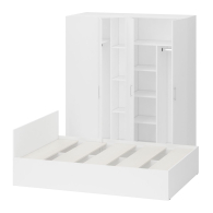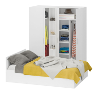 Гарнитур Спальный № 2 состоит из двухспальной кровати и двух шкафов объединенных в единый блок - 2-х створчатого и углового. Функциональность, компактность и простота формы - три слагаемые дизайнерской идеи спален Стандарт. Классическая геометрия и спокойный природный тон мебели Стандарт поддержат базовый интерьер, легко сочетаясь с мебелью любого стиля. В комнату с такой нейтральной обстановкой легко добавить индивидуальности, расставив акценты с помощью креативных аксессуаров. Кровать Стандарт - надёжная, с устойчивым основанием и удобной спинкой, идеально подходит для детской комнаты. Сп.м. 1400х2000 мм, основание в комплекте (настил ДСП), матрас 1400х2000 мм. приобретается отдельно. Определённый интерес мебель Стандарт представляет и для обустройства гостиничных номеров, пансионатов, детских лагерей. За распашными дверками шкафа для одежды расположены отделение со штангой для одежды на плечиках и антресольной полкой с одной стороны, и нишей с тремя полками с другой. За распашной дверкой шкафа углового расположены два отделения - со штангой для одежды на плечиках и антресольной полкой с одной стороны, и нишей с тремя полками с другой. Универсальная сборка - сторону открывания двери и располажение отделений внутри шкафа - Вы определятете при сборке. Боковина шкафа углового для соединения с другой мебелью имеет глубину 52 см. Гарнитур Спальный № 2 имеет универсальный интерьер, который будет жить вне времени и моды, без необходимости обновления. Элегантная простота и эргономичность кровати, в сочетании с идеальным качеством исполнения, обещают удовольствие на долгие годы. Гарнитур Спальный № 2 выполнен из экологически чистой ламинированной ДСП с классом эмиссии Е1, допустимым для детской мебели. В производстве мебели использована фурнитура высоких стандартов и обработка деталей противоударной кромкой ПХВ. Поставляется мебель в разобранном виде в надёжной упаковке, с комплектом фурнитуры и инструкцией по сборке.