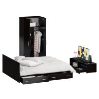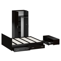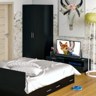 Спальня Стандарт № 3 состоит из двухспальной кровати, шкафа 2-х створчатого и тумбы под ТВ. Функциональность, компактность и простота формы - три слагаемые дизайнерской идеи спален Стандарт. Классическая геометрия и спокойный природный тон мебели Стандарт поддержат базовый интерьер, легко сочетаясь с мебелью любого стиля. В комнату с такой нейтральной обстановкой легко добавить индивидуальности, расставив акценты с помощью креативных аксессуаров. Кровать Стандарт - надёжная, с устойчивым основанием и удобной спинкой, идеально подходит для детской комнаты. Сп.м. 1800х2000 мм, основание в комплекте (настил ДСП), матрас 1800х2000 мм. приобретается отдельно. В основании кровати расположены два вместительных ящика для хранения постельных принадлежностей и личных вещей. Определённый интерес мебель Стандарт представляет и для обустройства гостиничных номеров, пансионатов, детских лагерей. За распашными дверками шкафа для одежды расположены отделение со штангой для одежды на плечиках и антресольной полкой с одной стороны, и нишей с тремя полками с другой. Тумба под ТВ придётся по вкусу любителям стильных элементов мебели в оформлении интерьера. Особый акцент данной модели - глянцевое покрытие фасадов, выполненных из МДФ 16 мм. с торцевой фрезеровкой в виде фацета и геометрической фрезеровкой откидной дверки. Линейный декор тумбы подчёркнут ручками-рейлингами, имеющих сочетанное хромированно-матовое покрытие. Конструктивно тумба разделена на два одинаковой ширины отделения. Слева расположена закрытая откидной дверкой ниша, справа - открытая ниша и выдвижной ящик. Установлена тумба на плоские, прочные и надёжные прямоугольные ножки. Пластиковые накладки на ножках защитят Ваше напольное покрытие от механических повреждений. Спальня Стандарт № 3 имеет универсальный интерьер, который будет жить вне времени и моды, без необходимости обновления. Элегантная простота и эргономичность кровати, в сочетании с идеальным качеством исполнения, обещают удовольствие на долгие годы. Спальня Стандарт № 3 выполнен из экологически чистой ламинированной ДСП с классом эмиссии Е1, допустимым для детской мебели. В производстве мебели использована фурнитура высоких стандартов и обработка деталей противоударной кромкой ПХВ. Поставляется мебель в разобранном виде в надёжной упаковке, с комплектом фурнитуры и инструкцией по сборке.