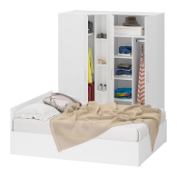 Гарнитур Спальный № 2 состоит из двухспальной кровати и двух шкафов объединенных в единый блок - 2-х створчатого и углового. Функциональность, компактность и простота формы - три слагаемые дизайнерской идеи спален Стандарт. Классическая геометрия и спокойный природный тон мебели Стандарт поддержат базовый интерьер, легко сочетаясь с мебелью любого стиля. В комнату с такой нейтральной обстановкой легко добавить индивидуальности, расставив акценты с помощью креативных аксессуаров. Кровать Стандарт - надёжная, с устойчивым основанием и удобной спинкой, идеально подходит для детской комнаты. Сп.м. 1600х2000 мм, основание в комплекте (настил ДСП), матрас 1600х2000 мм. приобретается отдельно. Определённый интерес мебель Стандарт представляет и для обустройства гостиничных номеров, пансионатов, детских лагерей. За распашными дверками шкафа для одежды расположены отделение со штангой для одежды на плечиках и антресольной полкой с одной стороны, и нишей с тремя полками с другой. За распашной дверкой шкафа углового расположены два отделения - со штангой для одежды на плечиках и антресольной полкой с одной стороны, и нишей с тремя полками с другой. Универсальная сборка - сторону открывания двери и располажение отделений внутри шкафа - Вы определятете при сборке. Боковина шкафа углового для соединения с другой мебелью имеет глубину 52 см. Гарнитур Спальный № 2 имеет универсальный интерьер, который будет жить вне времени и моды, без необходимости обновления. Элегантная простота и эргономичность кровати, в сочетании с идеальным качеством исполнения, обещают удовольствие на долгие годы. Гарнитур Спальный № 2 выполнен из экологически чистой ламинированной ДСП с классом эмиссии Е1, допустимым для детской мебели. В производстве мебели использована фурнитура высоких стандартов и обработка деталей противоударной кромкой ПХВ. Поставляется мебель в разобранном виде в надёжной упаковке, с комплектом фурнитуры и инструкцией по сборке.