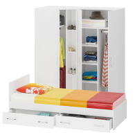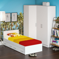 Гарнитур Спальный № 2 состоит из односпальной кровати с ящиками и двух шкафов объединенных в единый блок - 2-х створчатого и углового. Функциональность, компактность и простота формы - три слагаемые дизайнерской идеи спален Стандарт. Классическая геометрия и спокойный природный тон мебели Стандарт поддержат базовый интерьер, легко сочетаясь с мебелью любого стиля. В комнату с такой нейтральной обстановкой легко добавить индивидуальности, расставив акценты с помощью креативных аксессуаров. Кровать Стандарт - надёжная, с устойчивым основанием и удобной спинкой, идеально подходит для детской комнаты. Сп.м. 900х2000 мм, основание в комплекте (настил ДСП), матрас 900х2000 мм. приобретается отдельно. В основании кровати расположены два вместительных ящика для хранения постельных принадлежностей и личных вещей. Определённый интерес мебель Стандарт представляет и для обустройства гостиничных номеров, пансионатов, детских лагерей. За распашными дверками шкафа для одежды расположены отделение со штангой для одежды на плечиках и антресольной полкой с одной стороны, и нишей с тремя полками с другой. За распашной дверкой шкафа углового расположены два отделения - со штангой для одежды на плечиках и антресольной полкой с одной стороны, и нишей с тремя полками с другой. Универсальная сборка - сторону открывания двери и располажение отделений внутри шкафа - Вы определятете при сборке. Боковина шкафа углового для соединения с другой мебелью имеет глубину 52 см. Гарнитур Спальный № 2 имеет универсальный интерьер, который будет жить вне времени и моды, без необходимости обновления. Элегантная простота и эргономичность кровати, в сочетании с идеальным качеством исполнения, обещают удовольствие на долгие годы. Гарнитур Спальный № 2 выполнен из экологически чистой ламинированной ДСП с классом эмиссии Е1, допустимым для детской мебели. В производстве мебели использована фурнитура высоких стандартов и обработка деталей противоударной кромкой ПХВ. Поставляется мебель в разобранном виде в надёжной упаковке, с комплектом фурнитуры и инструкцией по сборке.