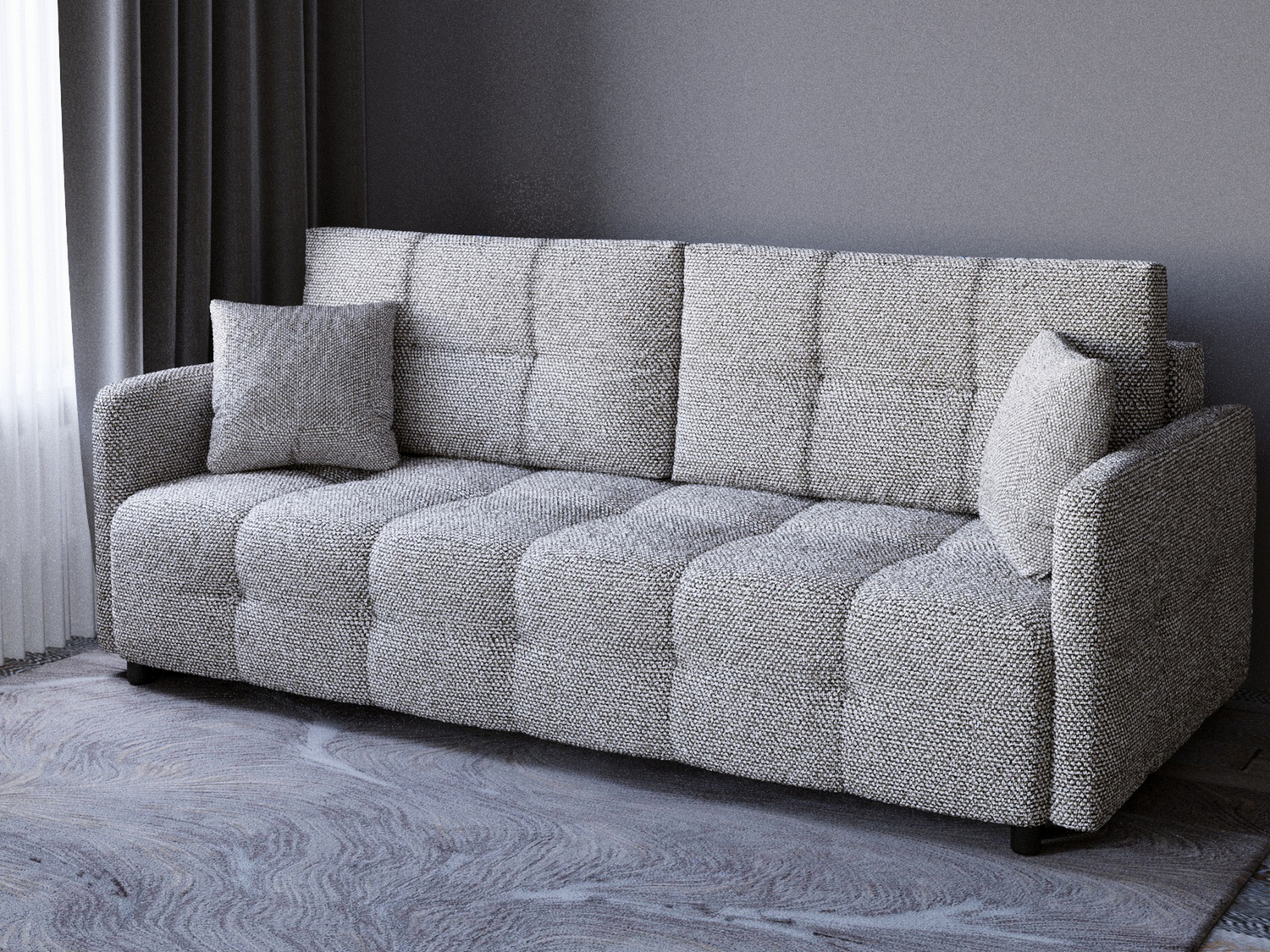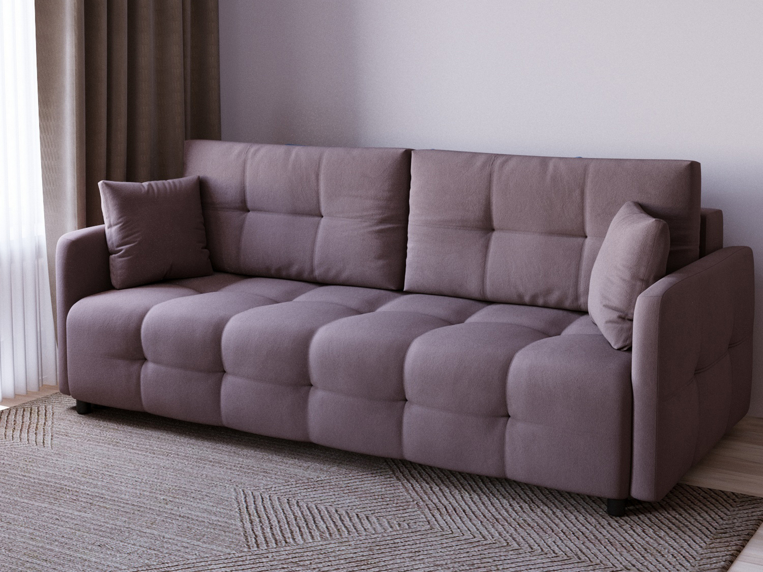 Диван сразу привлекает внимание, смотрится отлично. Прострочка квадратами, приятный цвет, красивый дизайн. Без раздумий выбрала именно Квадро, оплатила на месте. Привезли аккуратно упакованным, ни пятнышка. Спасибо, от покупки все в восторге.