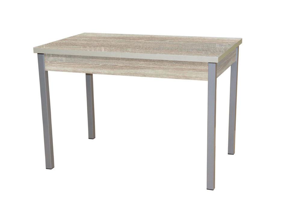 Стол изготовлен из ЛДСП высокого качества. Толщина столешницы 32 мм. Стол раздвижной с использованием синхронного механизма раздвижения. Ножки квадратные металлические.