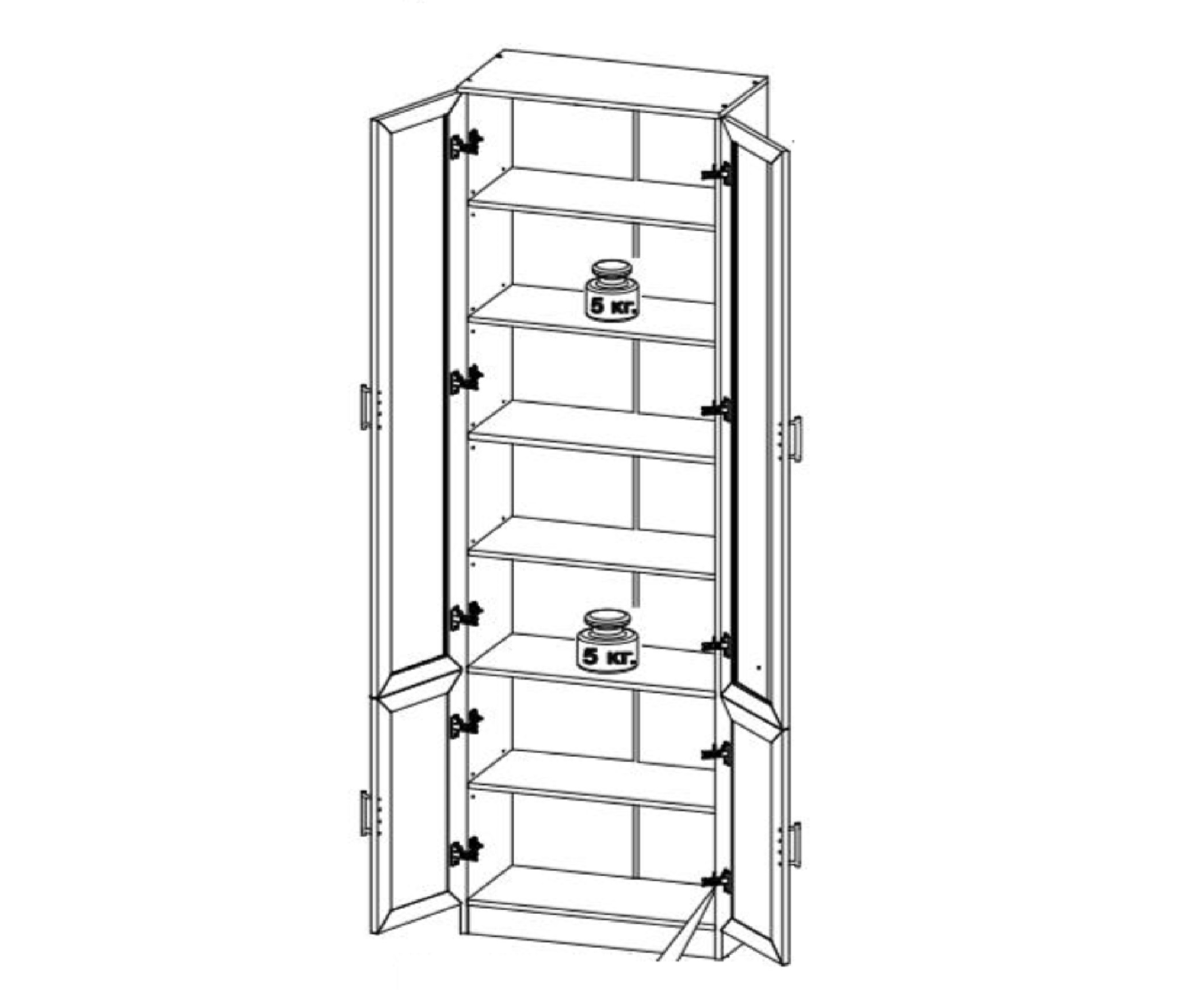Максимальная нагрузка на 1 полку: 5 кг.
