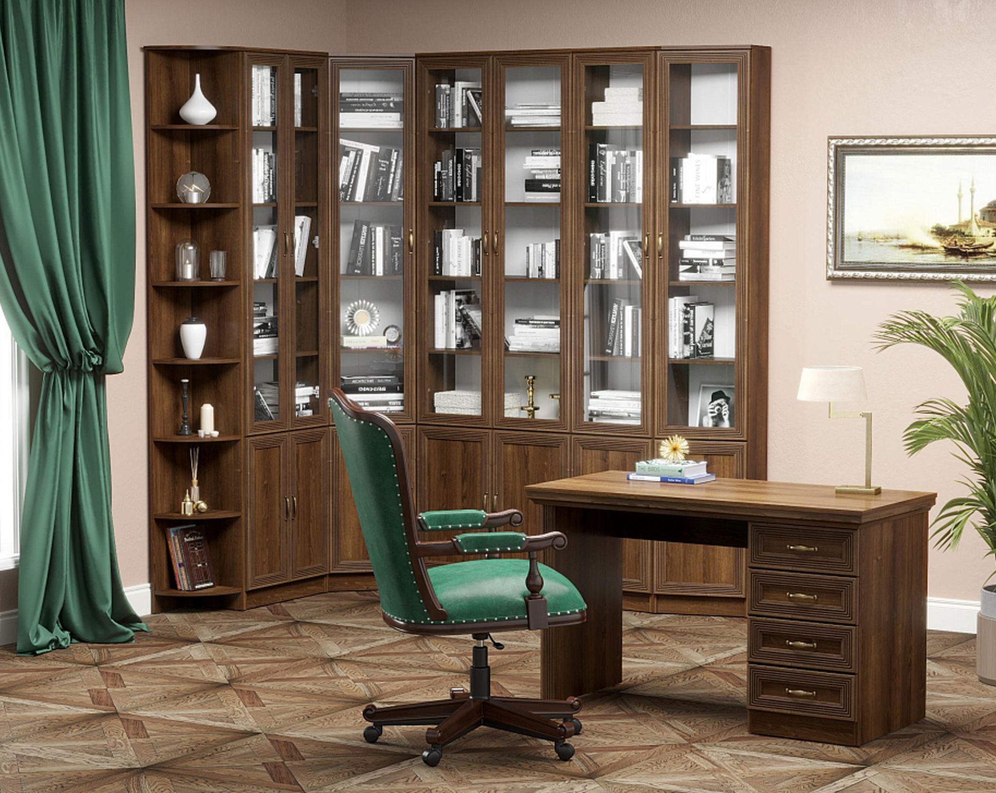 Шкаф-витрина В-19 можно использовать как самостоятельный элемент в интерьере или дополнить им и другие модули из серии витрин.