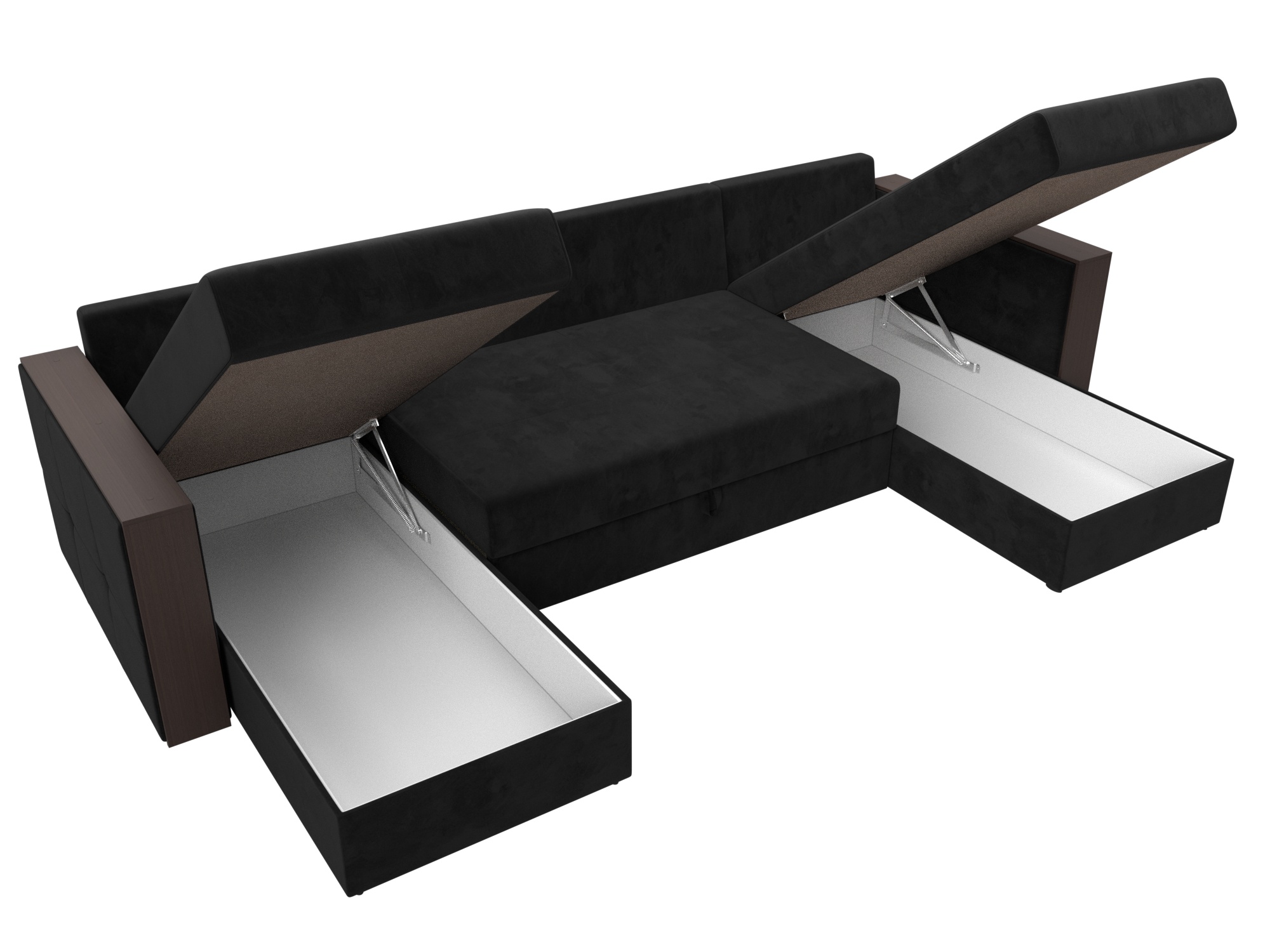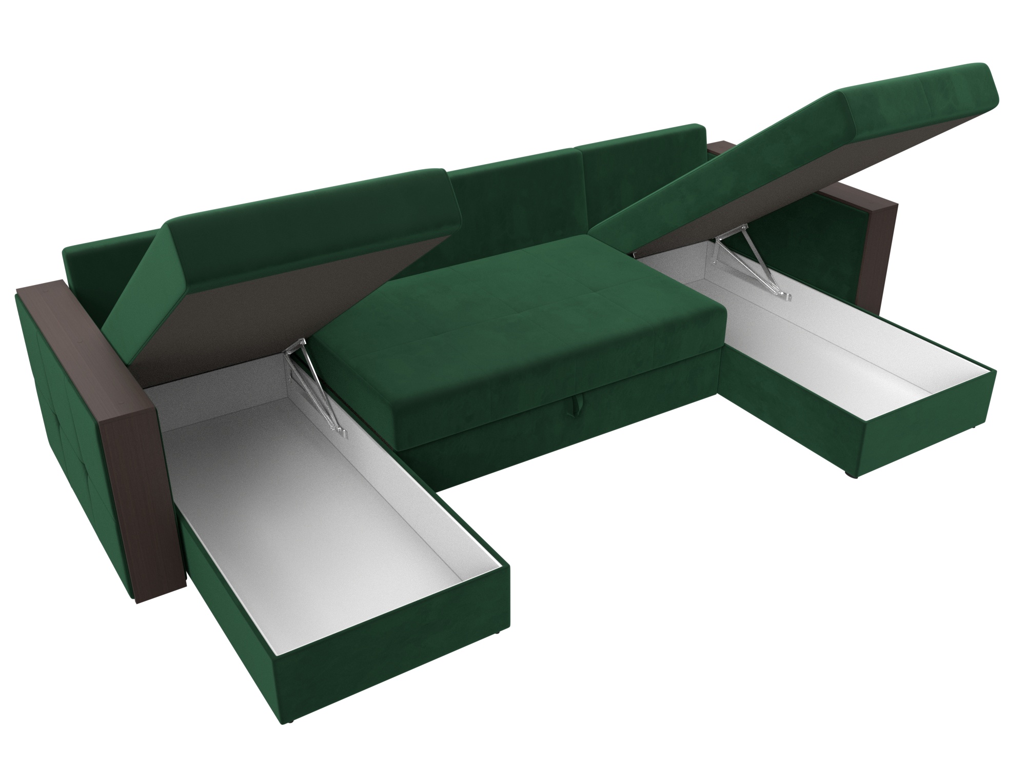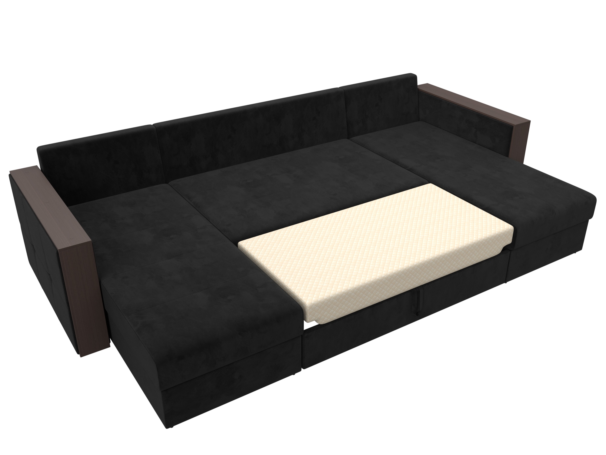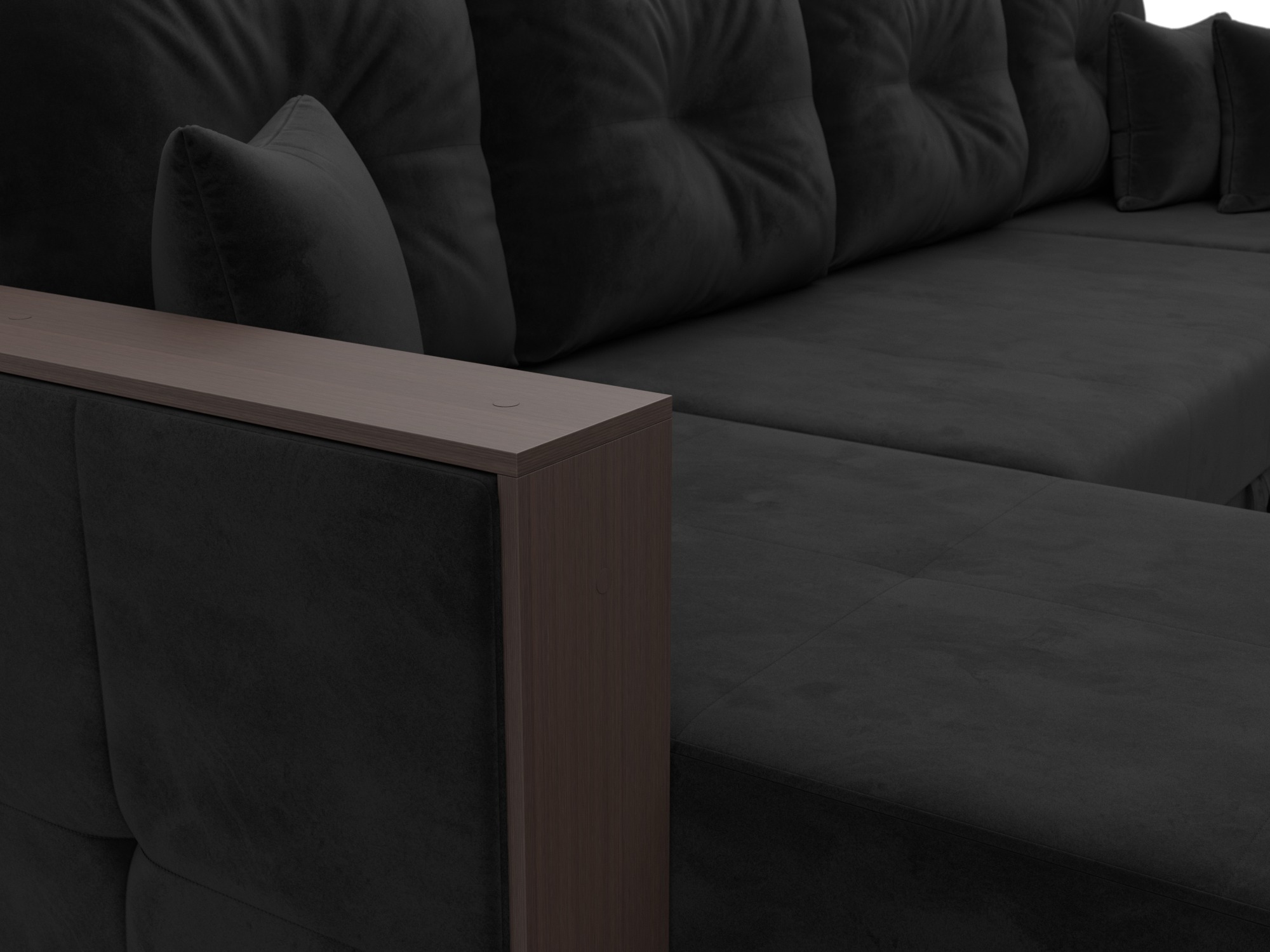 Спальный П-образный диван Валенсия – отражение изысканной испанской классики. В нем оригинально сочетаются натуральные ткани и дерево. Спинка образуется за счет объемных подушек. Подлокотники – это удобные столики с идеально ровной поверхностью. Диван дополнен вместительными ящиками для белья.