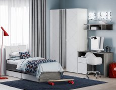 Конструкция с тумбой, оснащенной выдвижным ящиком и распашной дверцей.Фасады выполнены из МДФ и имеют оригинальную фактуру и цветовое исполнение.