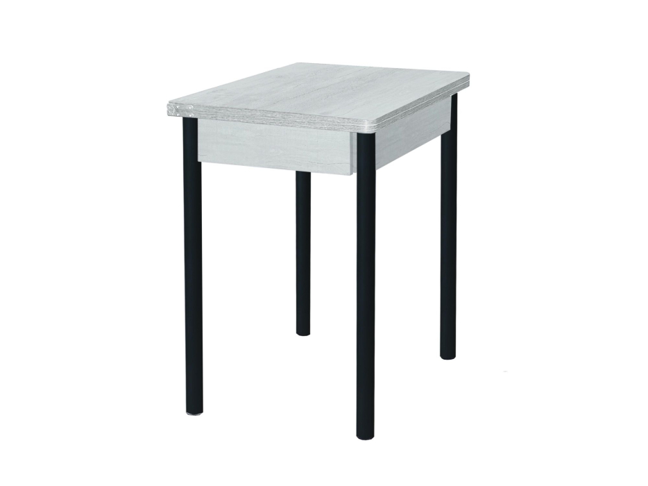 Обеденный раскладной стол Глайдер - компактный и надежный стол для кухни. Столешница выполнена из ЛДСП. Стол стоит на прочных круглых металлических ножках. Форма столешницы прямоугольная. Размер стола в разобранном виде 700х1000 мм, в собранном виде 700х500 мм